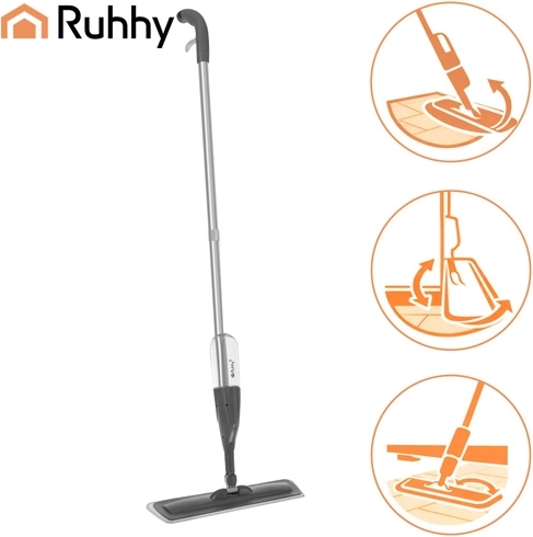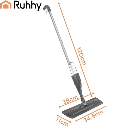 Hold hjemmet skinnende rent med RUHHY-moppen, der kombinerer præcis dosering af vand via aftrækkeren i håndtaget og høj manøvredygtighed takket være leddet med 360° rotation. Beholderen på 300 ml rækker til større arealer og sparer tid og kræfter – ingen spand nødvendig.