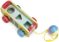 Denne trækbus er lavet af kvalitets træ og tilbyder ikke kun sjov, men også en udfordring for små tænkere. Med klare farver og dyr, der kan indsættes og tages ud, understøtter den børns udvikling på flere områder:
