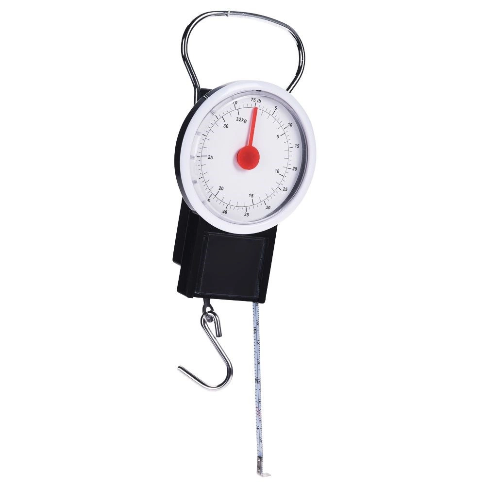 Kompakt mekanisk bagagevægt med krog og udtrækkeligt målebånd – ideel til rejser. Gør det nemt at tjekke kuffertens vægt før afrejse og undgå overvægtgebyrer. Har kapacitet op til 32 kg, letlæselig analog skive i kg og lb, sammenklappeligt metalhåndtag og udtrækkeligt målebånd op til 100 cm. Uden batterier, altid klar til brug.