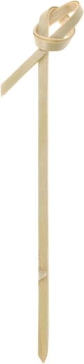 Stilfulde bambusspyd med dekorativ knude, 9 cm lange, i en pakke med 50 stk. Ideelle til servering af canapéer, frugt, burgere og cocktailpynt. De er lavet af naturlig bambus, har en skarp spids for let gennemstikning og et praktisk løkkehoved for sikker håndtering og bedre præsentation. Et stærkt, holdbart og alsidigt valg til både hjemmefester og gastronomi.