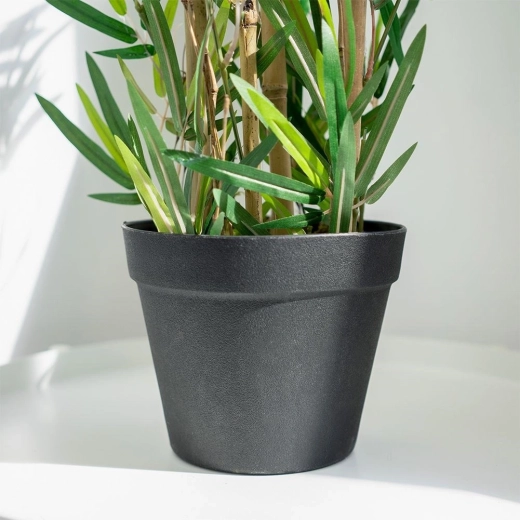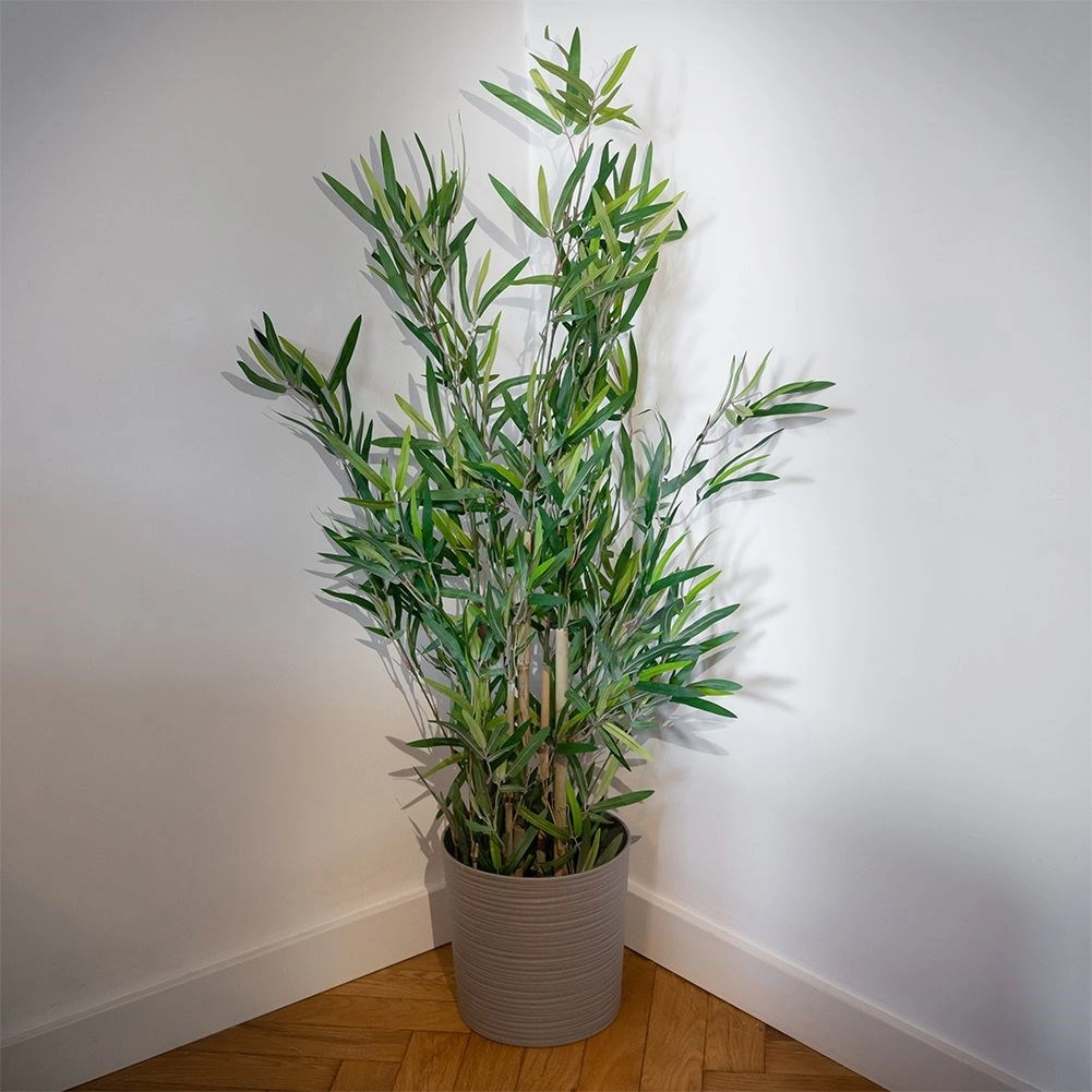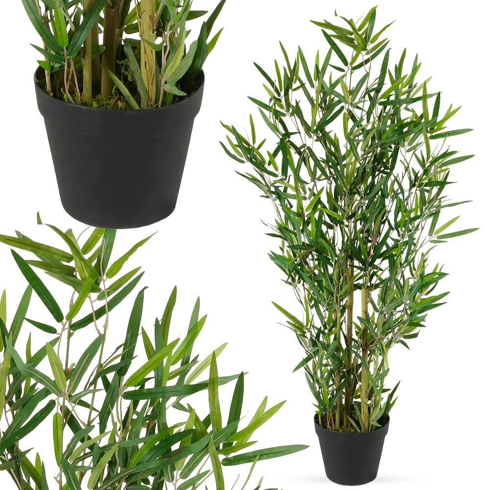 Denne kunstige bambus i urtepotte udmærker sig ved den naturlige bladstruktur og det tætte løv, som virker meget overbevisende. Takket være materialer af høj kvalitet bevarer den form og farve og giver et elegant grønt indslag i enhver indretning uden vanding og uden bladfald.