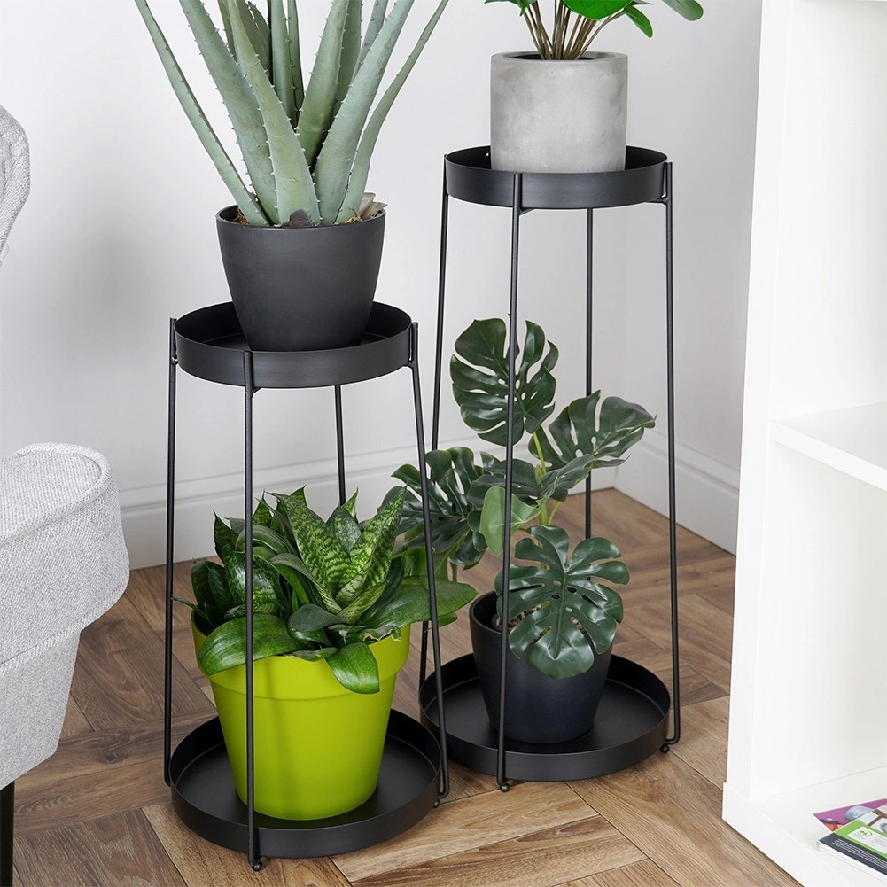 Oplev en moderne måde at fremhæve dine stueplanter på. De todelte standere i tidløs sort giver æstetisk præsentation, bedre luftcirkulation og lettere rengøring omkring planterne. Kombinationen af slanke linjer og solide metalbakker med kant passer perfekt til loft-, moderne- og scandi-indretning.