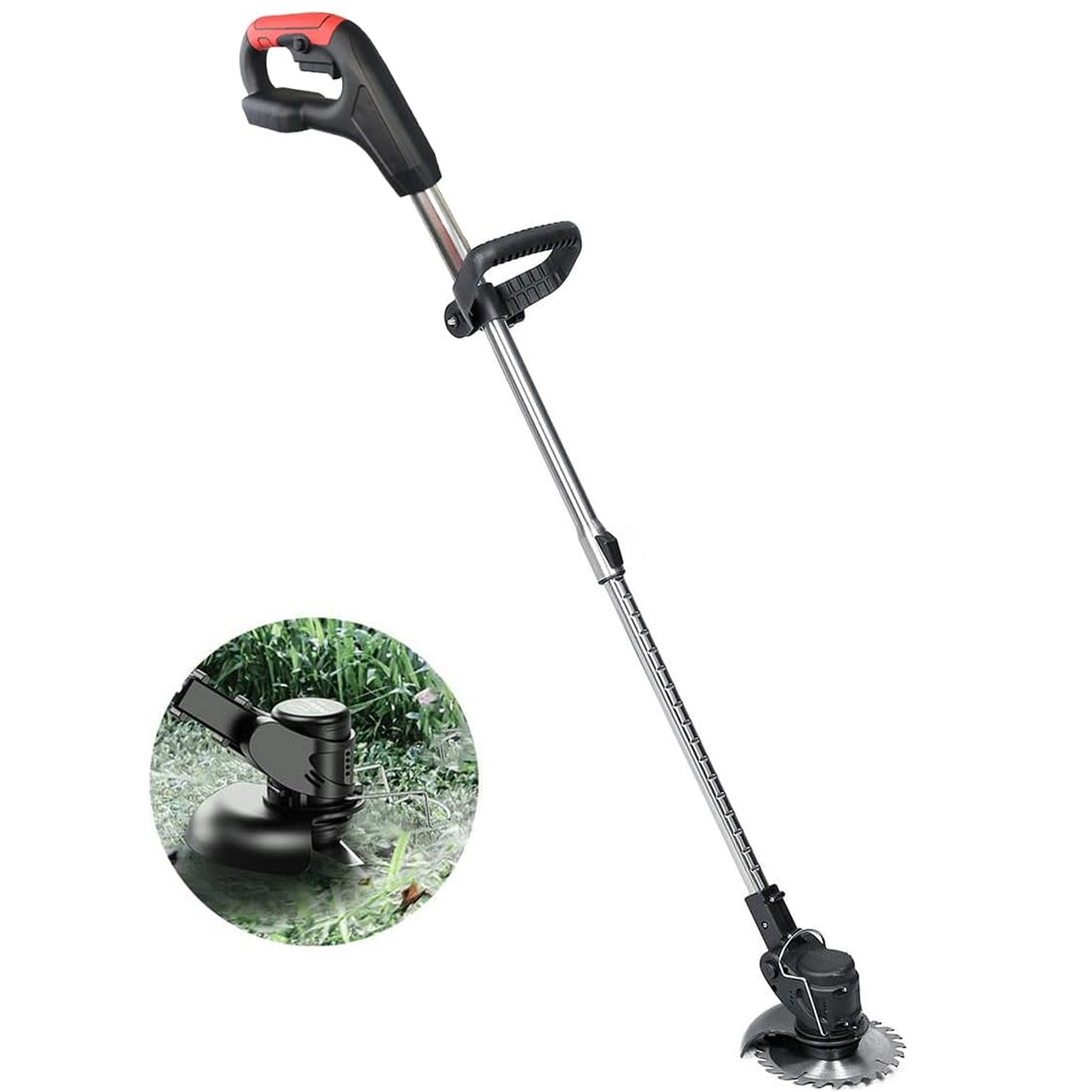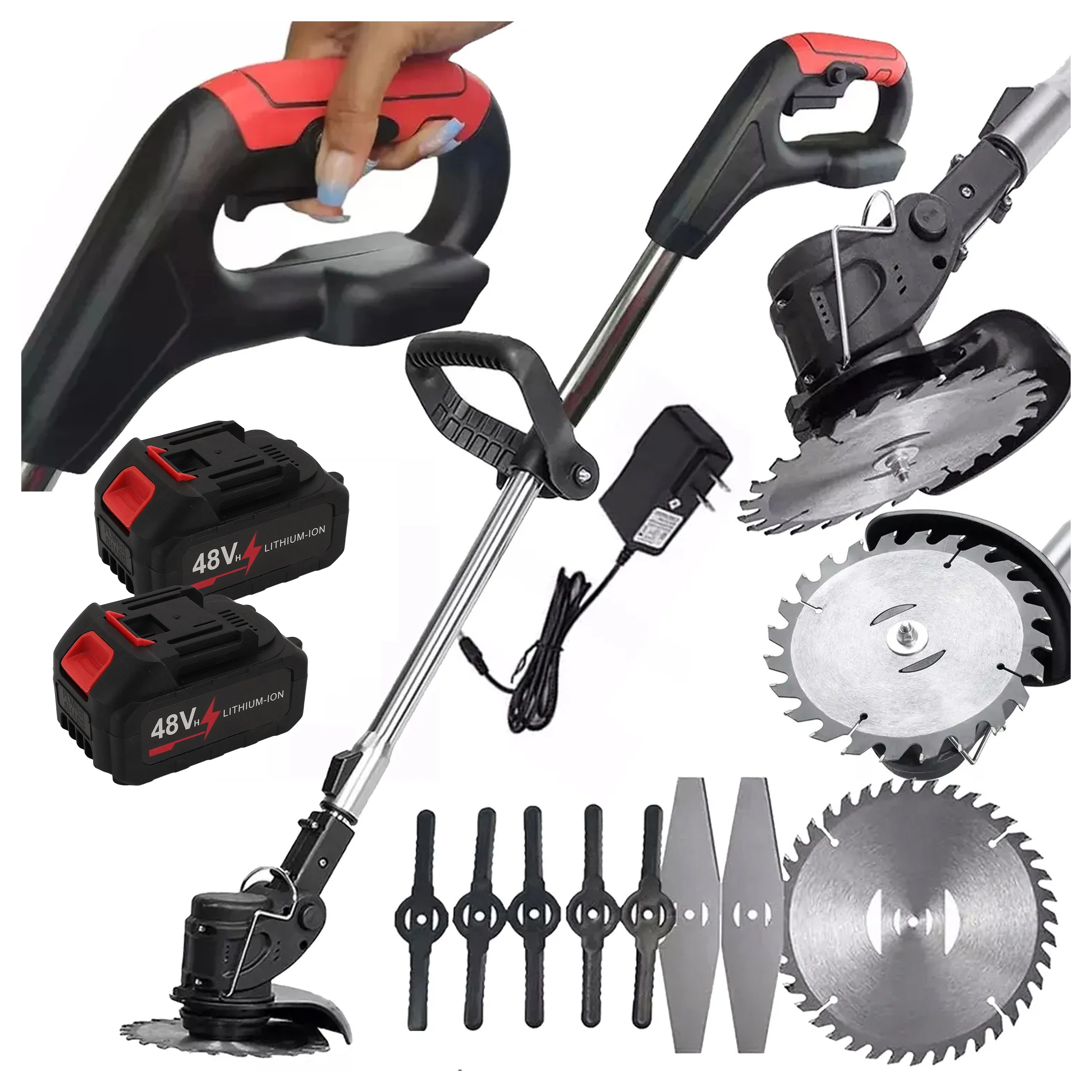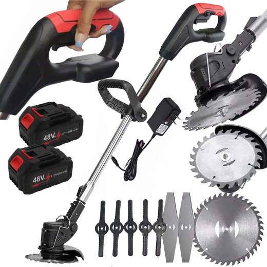 Maskinen leveres med 2× Li-Ion 48 V batterier og oplader, så du kan arbejde længere uden unødige pauser. Takket være justerbar hovedvinkel og hjælpegreb opnår du rene kanter langs stier, hegn og omkring træer. Den robuste konstruktion og muligheden for at bruge plastknive, metalkniv og savklinger gør den til en alsidig hjælper i enhver have.