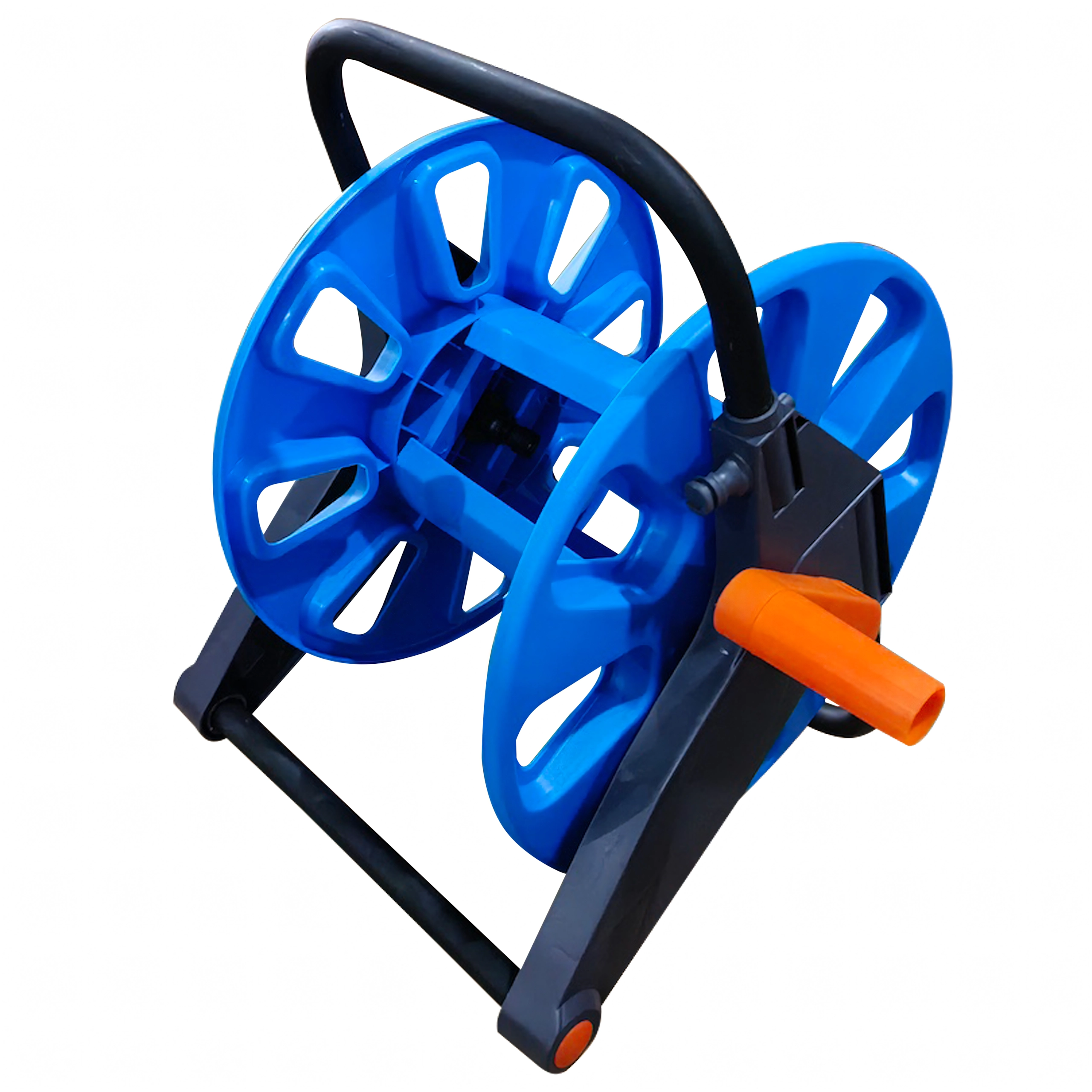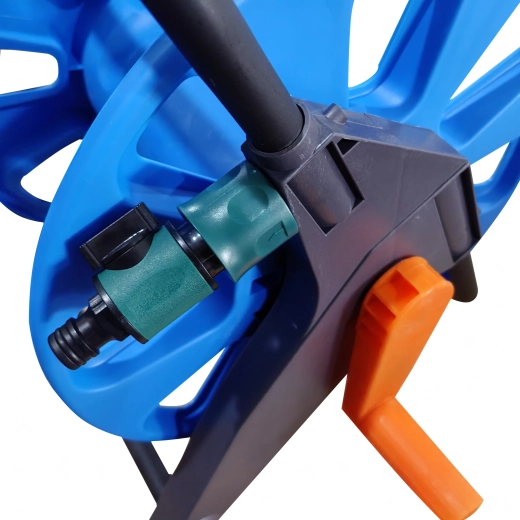 Den praktiske mobile slangevogn holder din haveslange altid pænt organiseret og klar til brug. Takket være den lette konstruktion og den komfortable håndsving er både oprulning og transport nemt. Der kan være op til 50–60 m slange på den, så den er ideel til have, gård og værksted. Ikke flere knuder og rod – kun hurtig oprulning, ren opbevaring og nem håndtering.