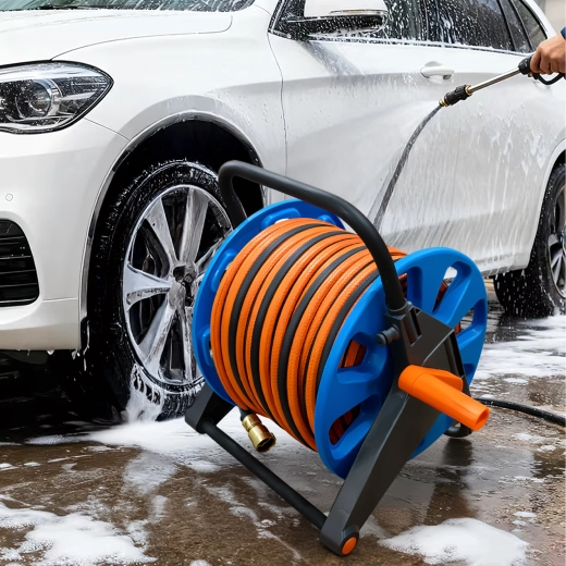 - Orden uden sammenfiltring – slangen er altid pænt rullet op og klar.