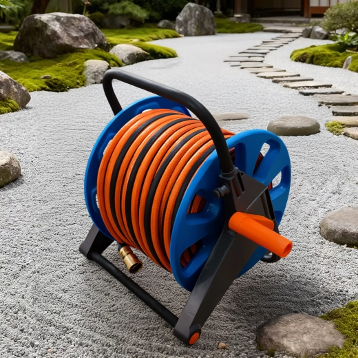 Kapacitet på op til 50–60 meter standard haveslange dækker selv større grunde. De kompakte mål og den lave vægt gør det let at bære og opbevare i garage eller haveskur. Et praktisk valg til daglig brug i haven, på terrassen og i værkstedet.