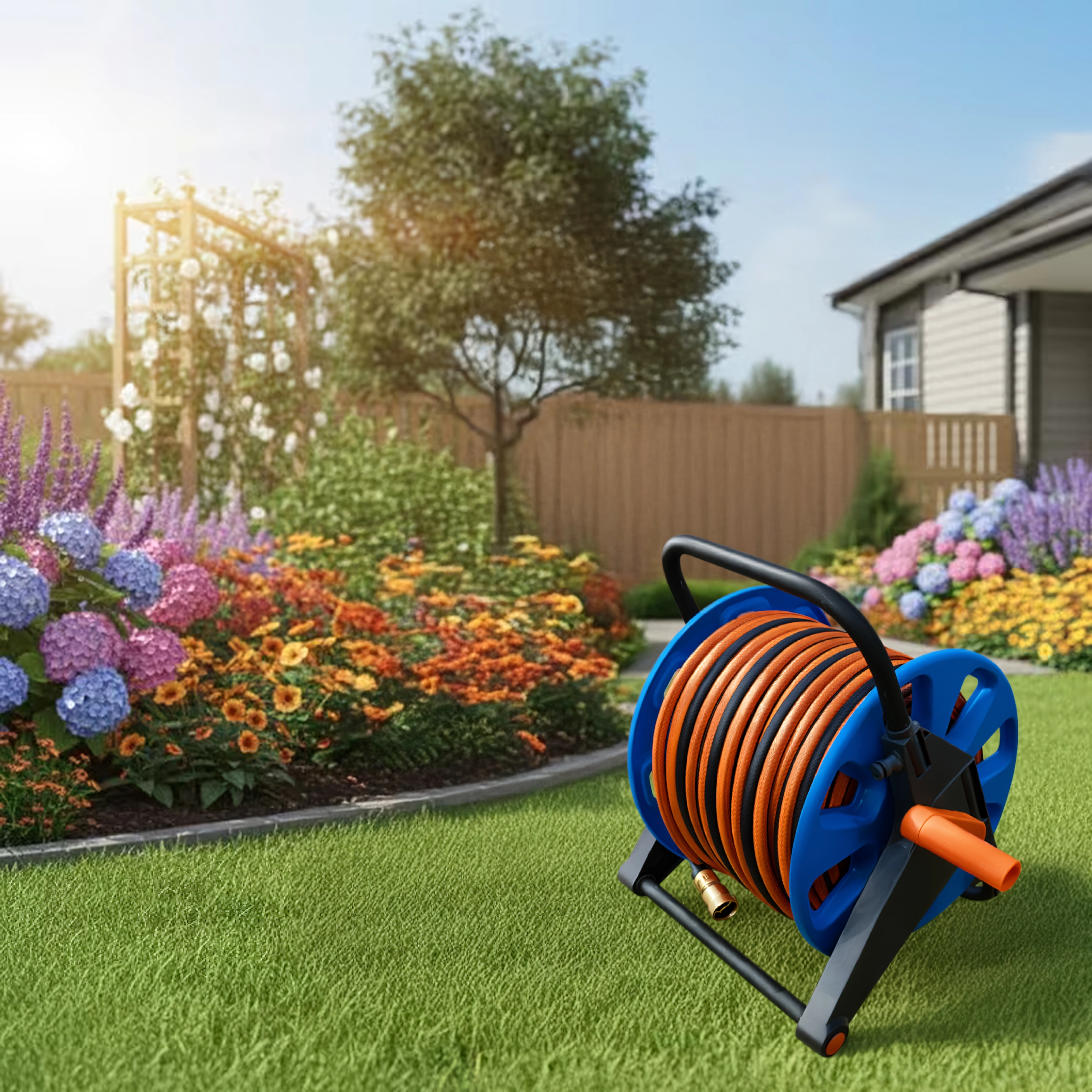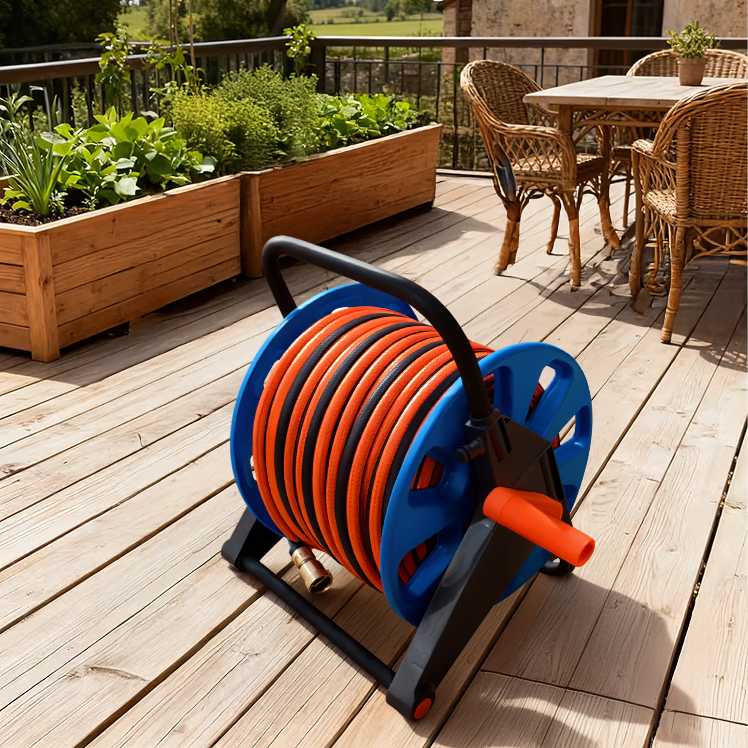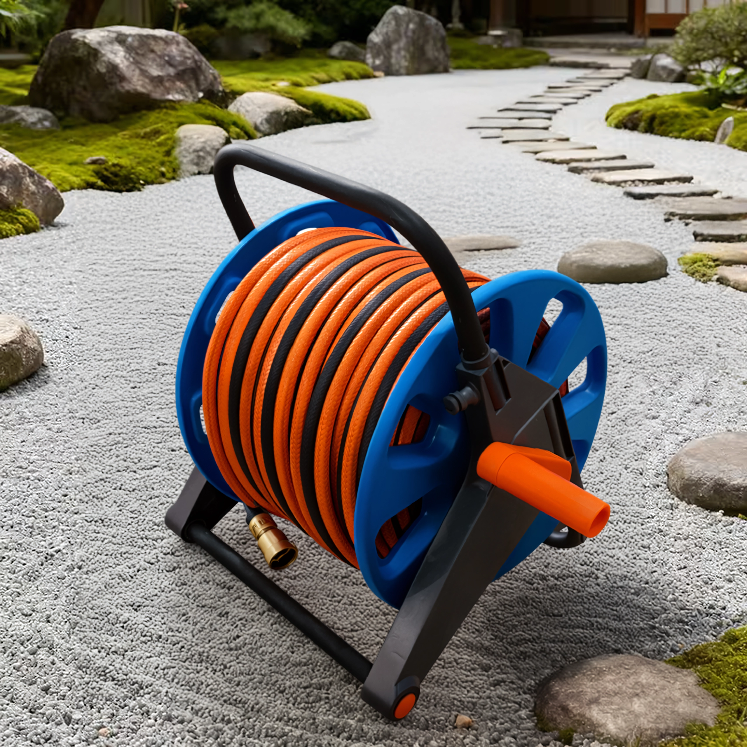 Tromlen rummer op til 50–60 m haveslange, ideel til større haver og længere rækkevidde.