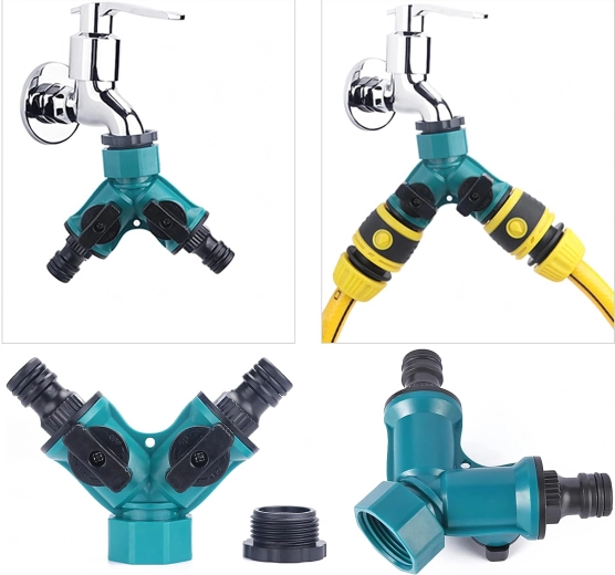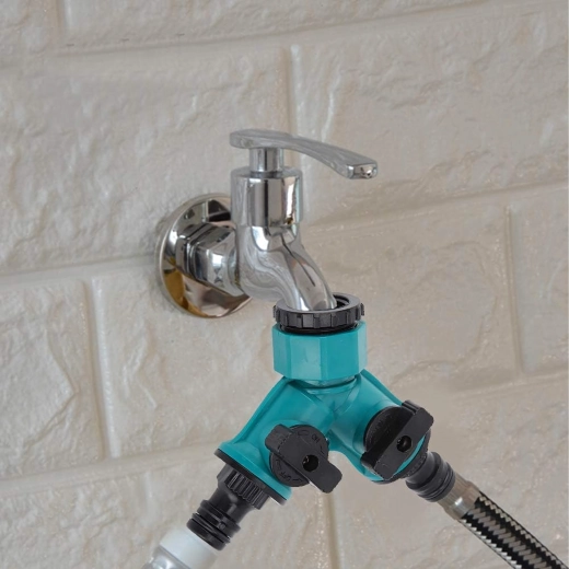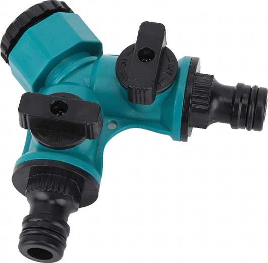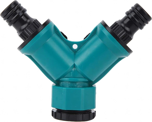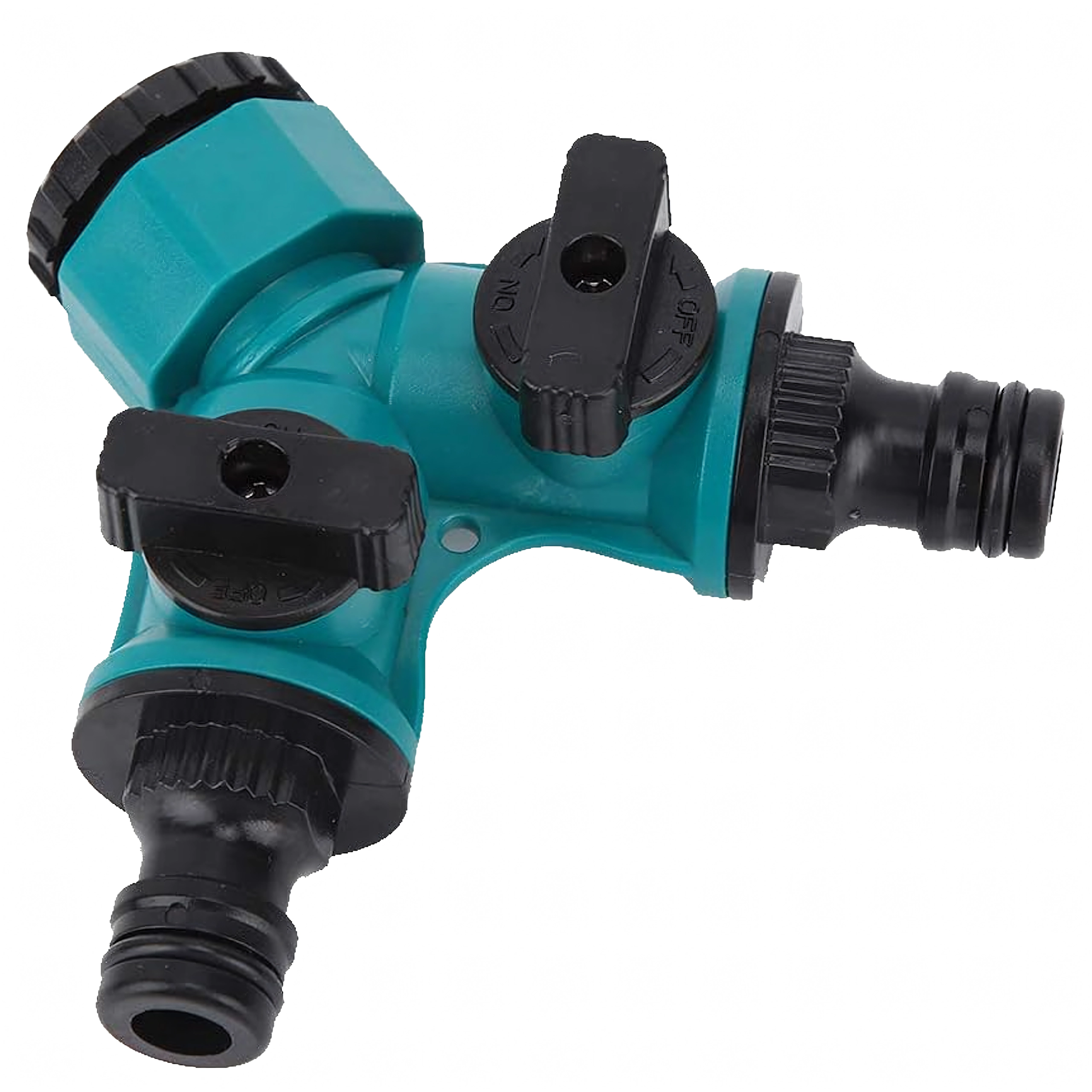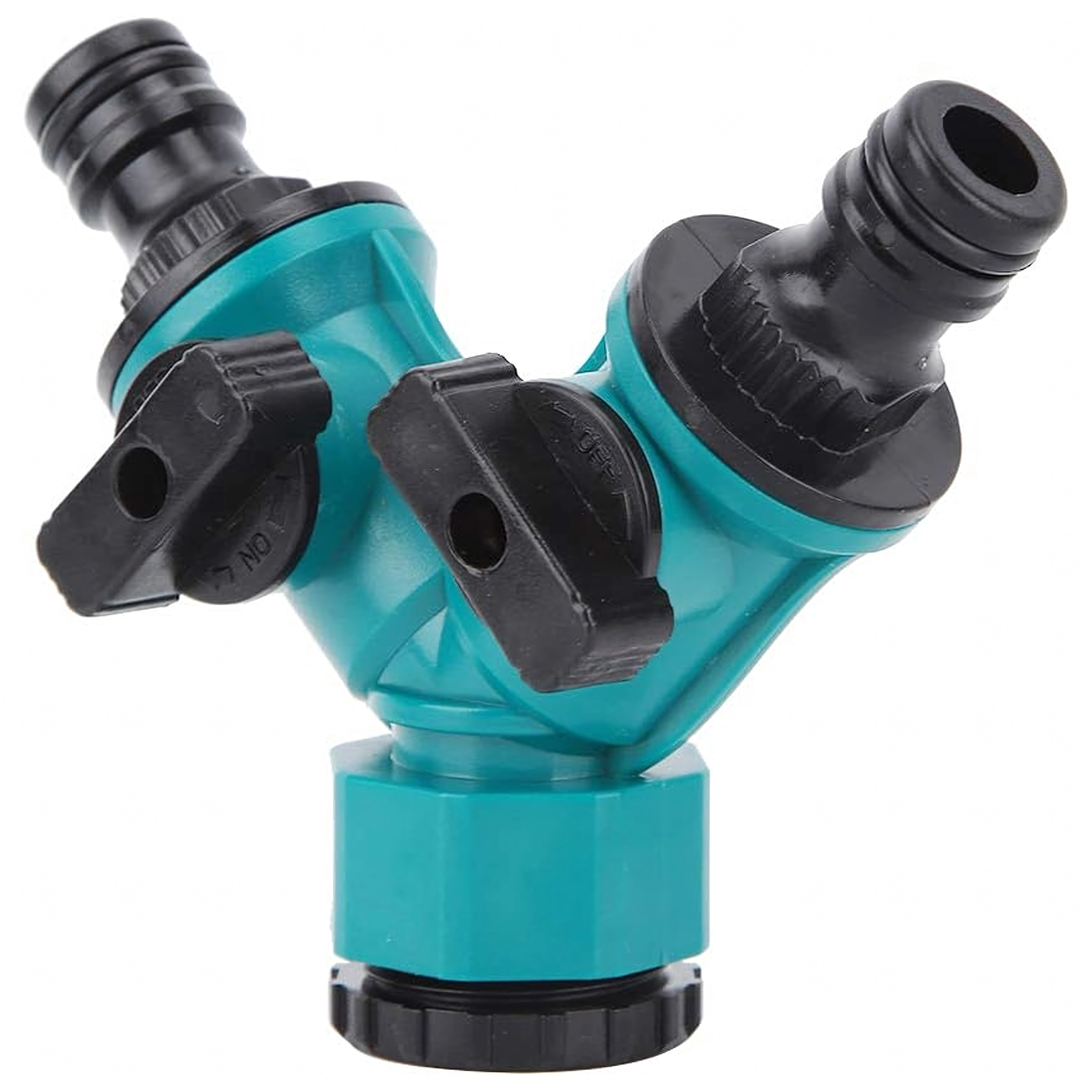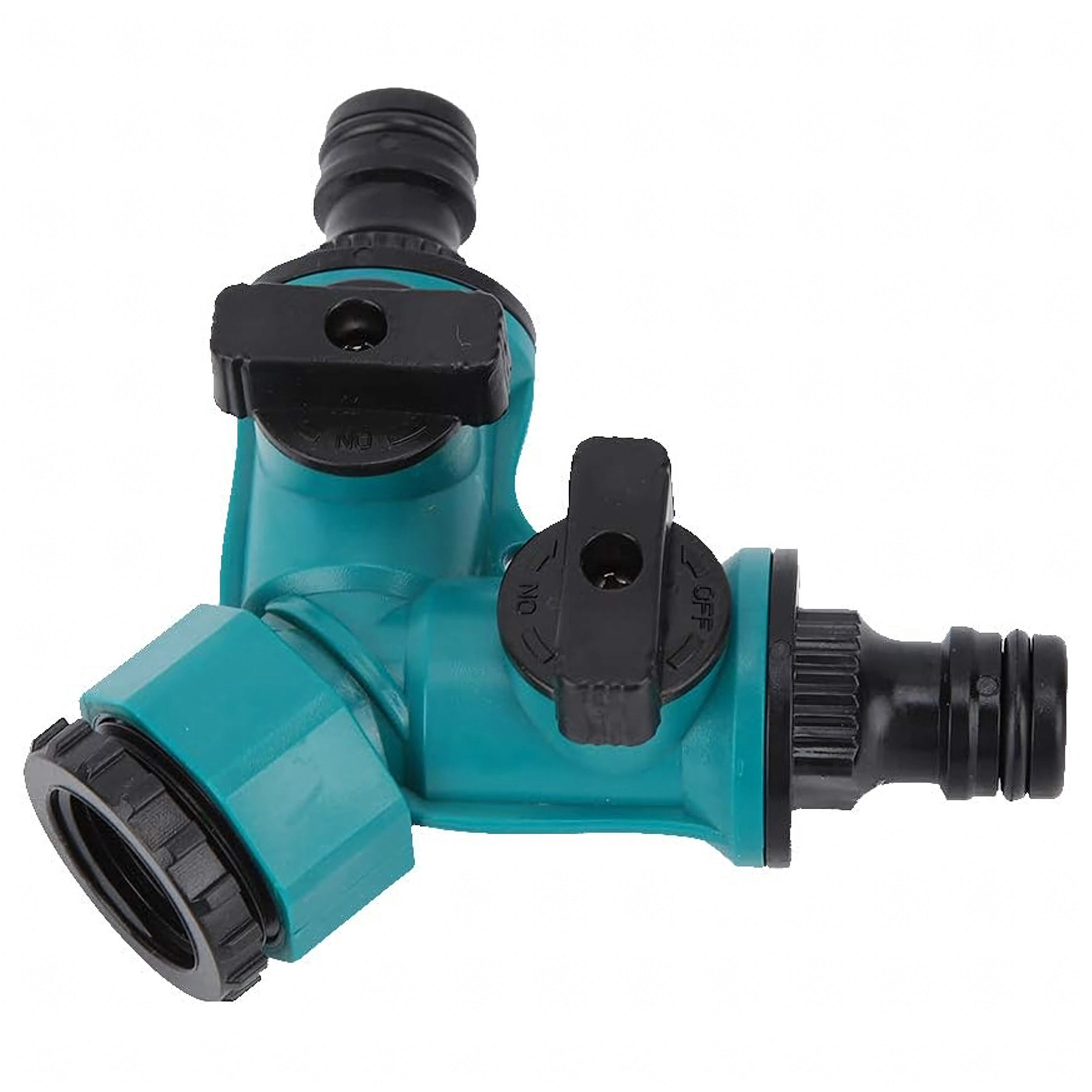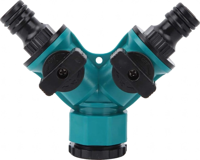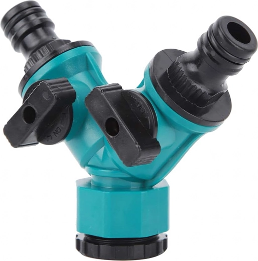 Udvid mulighederne for din udendørshane med en Y-fordeler, der lader dig tilslutte to slanger samtidig og styre hver for sig. Det robuste plastkorpus med metalgevind og lynkoblinger giver pålidelig tætning og nem montering blot ved håndopstramning.