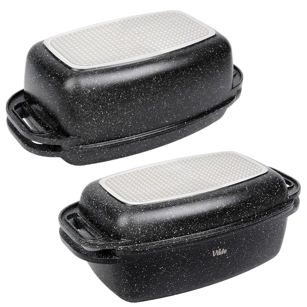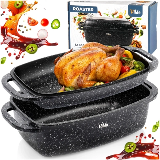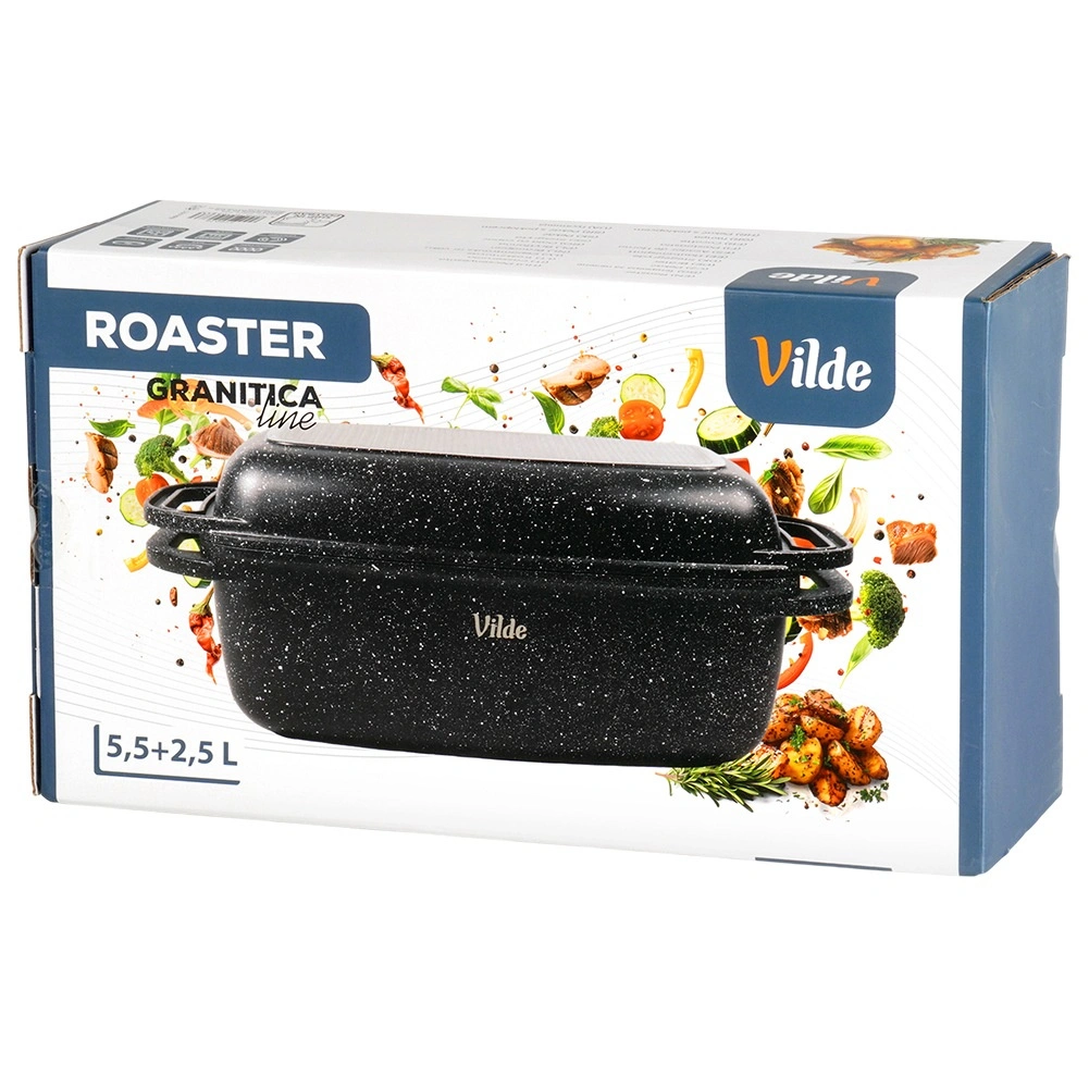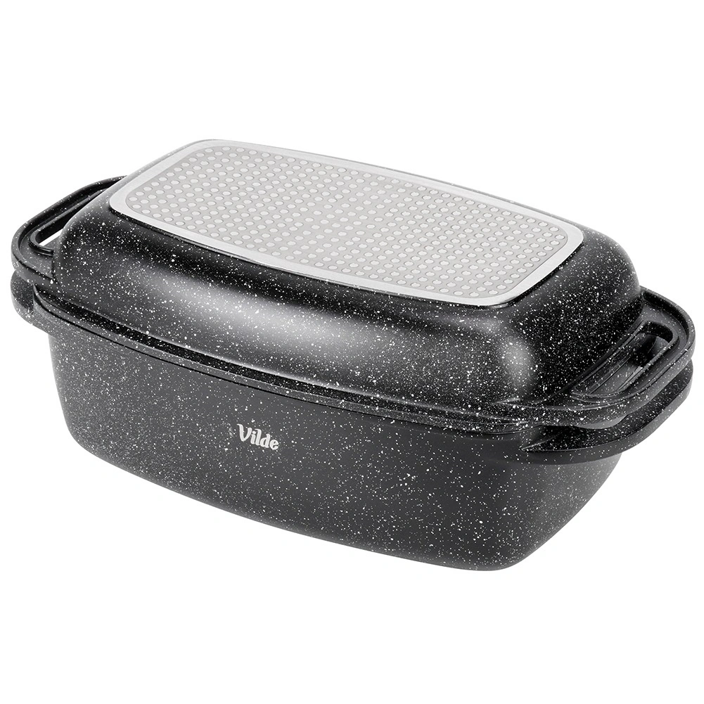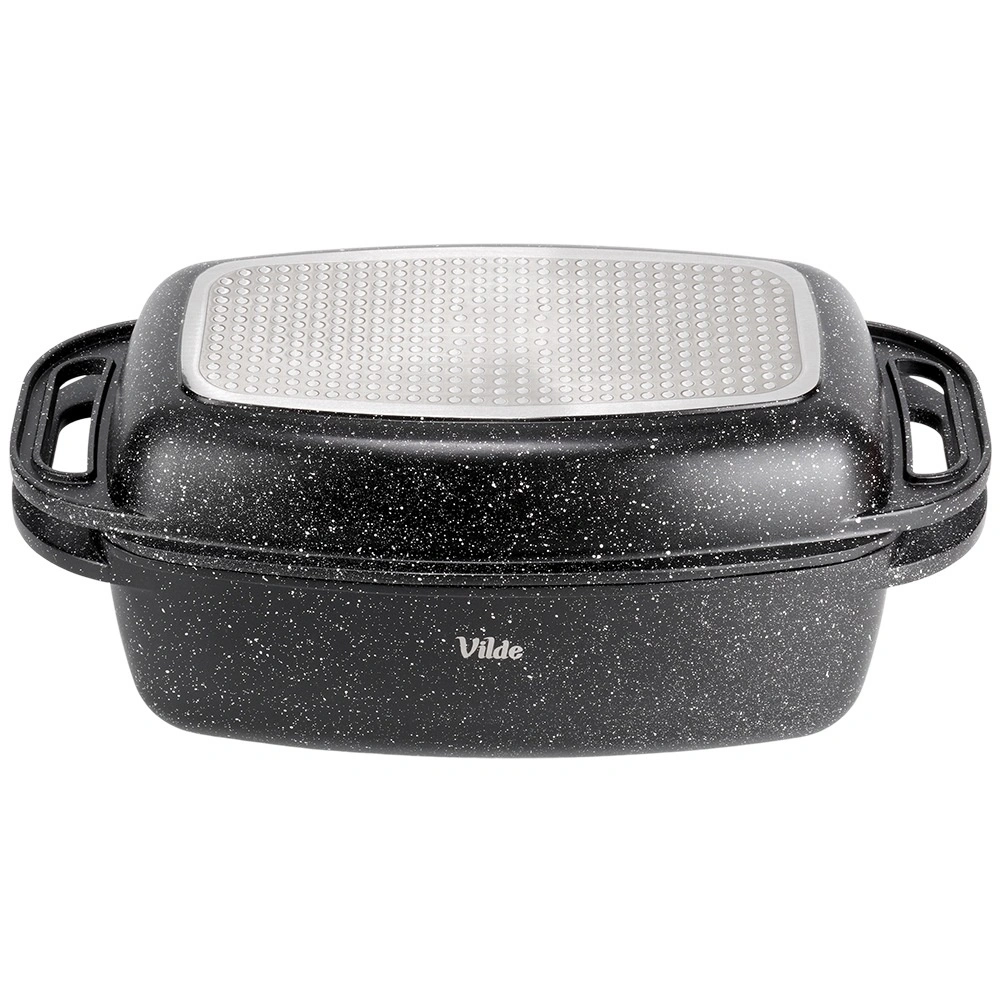 Alsidig brug: ovn op til 250 °C, gaskomfur, elektrisk, glaskeramisk og induktion. Efter madlavning kan den nemt sættes i opvaskemaskinen. Originalt produkt VILDE – Granitica Line, fremstillet efter europæiske standarder.