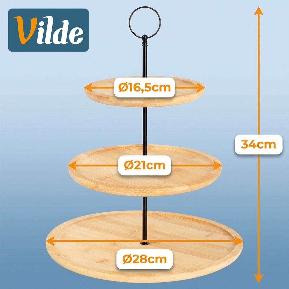 Etagèren er sammenklappelig, så du efter arrangementet let kan skille den ad og opbevare den for at spare plads i skabet. Det naturlige bambustræ er holdbart og let at vedligeholde, hvilket gør den ideel til både hjemmebrug og professionel brug, for eksempel på en sweet bar, til bryllupper, fødselsdage eller firmaevents.