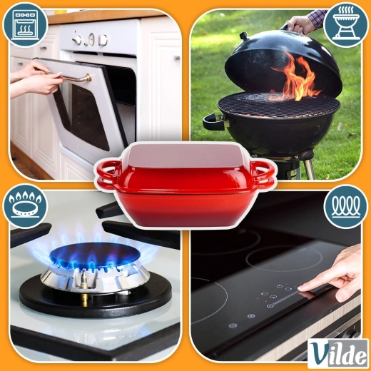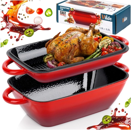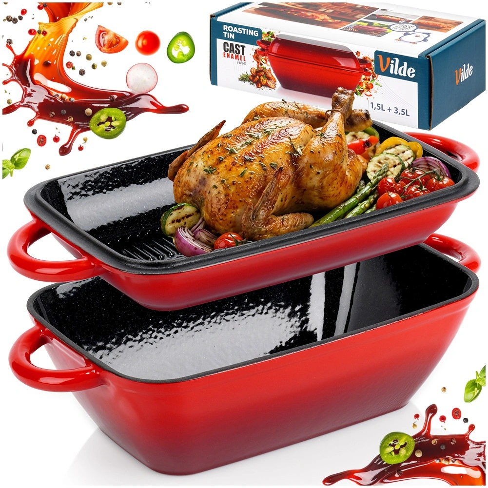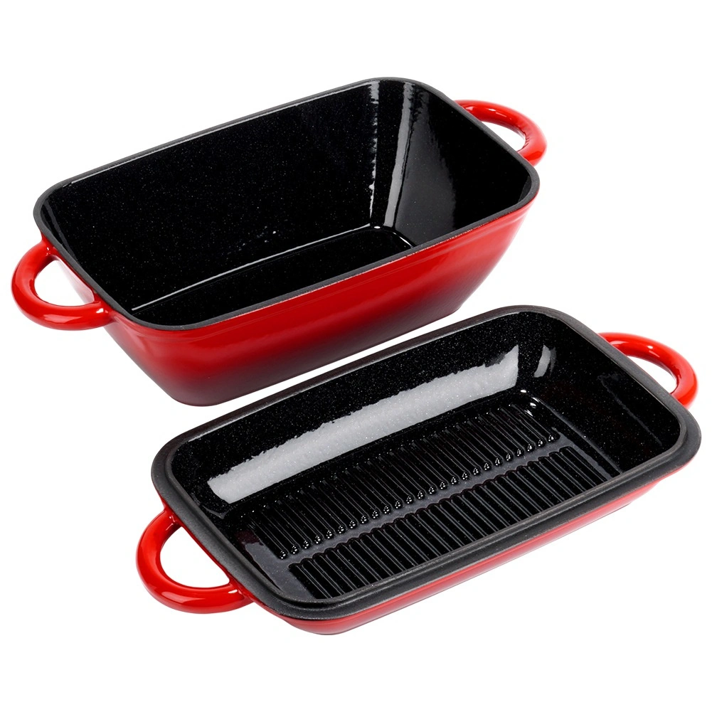 - Støbejern emaljeret bradepandesæt 2-i-1
