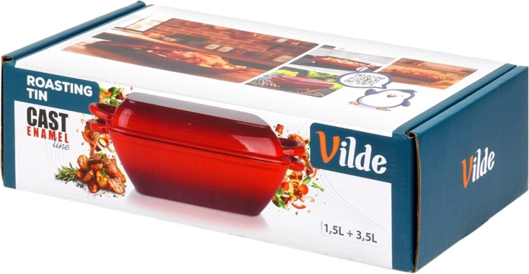 Med dette støbejernssæt 2-i-1 tilbereder du saftige stege, mættende one-pot-retter og sprøde grøntsager. Den nederste bradepande (3,5 l) er ideel til bagning og braisering, det øverste låg (1,5 l) kan bruges separat som lav bradepande eller som grillpande med rillet overflade. Den emaljerede overflade er robust, let at rengøre og hjælper med at forhindre fastbrænding.