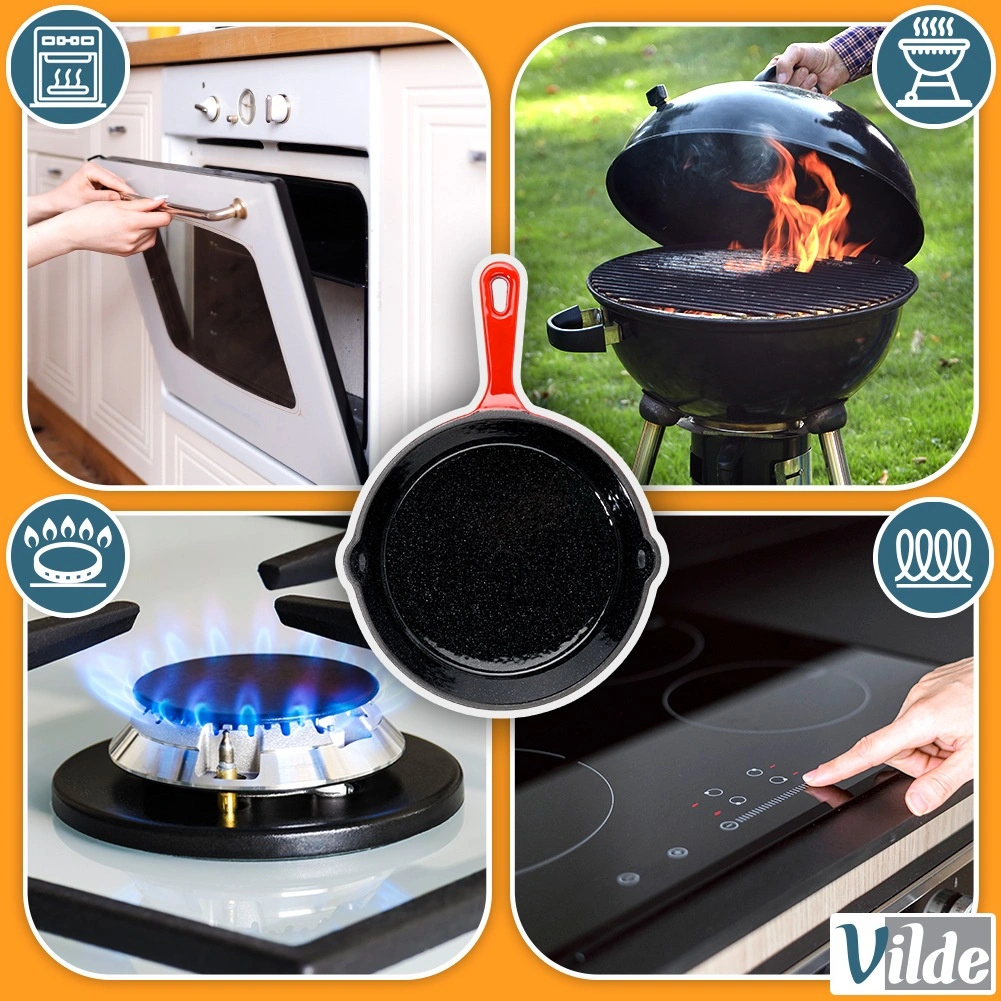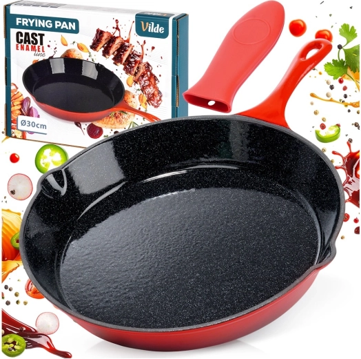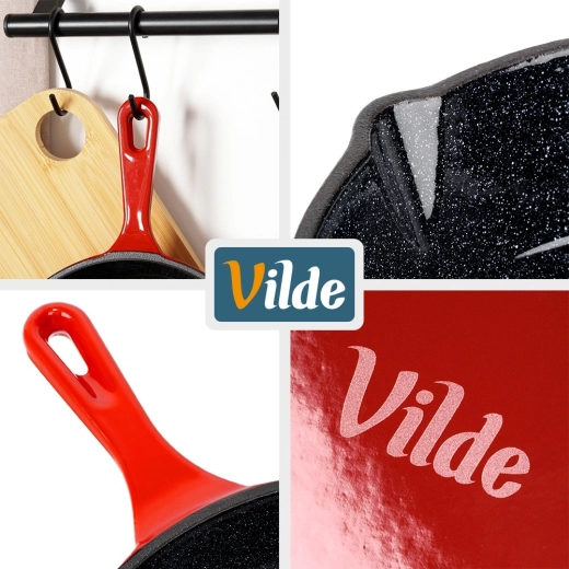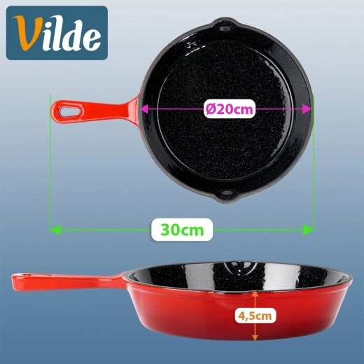 Den universelle anvendelse i køkkenet, på grillen og over åben ild gør denne pande til en fremragende makker både hjemme og på farten. Den solide udførelse og det tidløse design i rød farve understreger kvaliteten fra VILDE i serien CAST ENAMEL.
