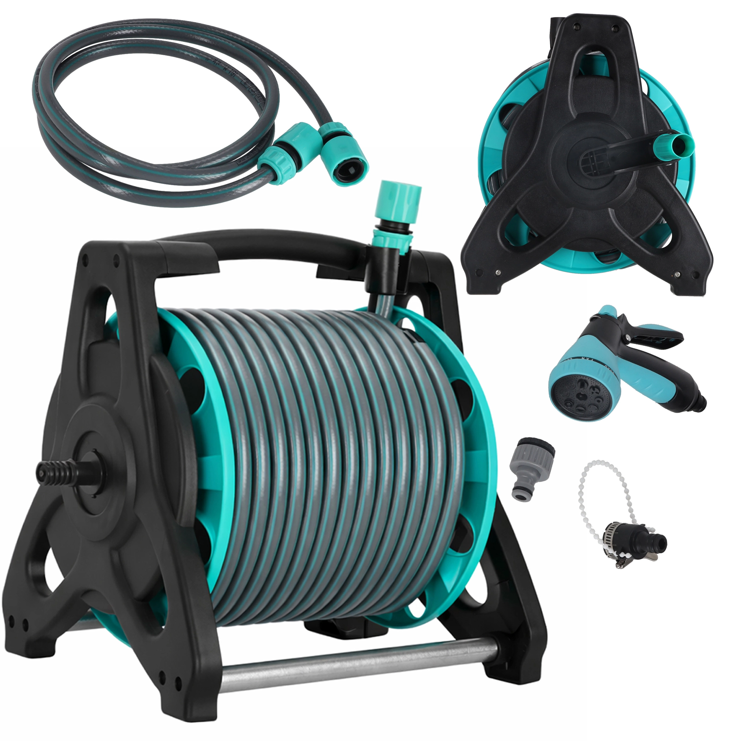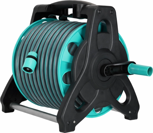 Alt, hvad du behøver for at komme i gang, er inkluderet: 2 m tilførselsslange, hurtigkoblinger, adaptere samt hanetilslutning. Slangerullen holder slangen uden vrid og knæk, så vandingen bliver hurtigere, renere og mere effektiv.