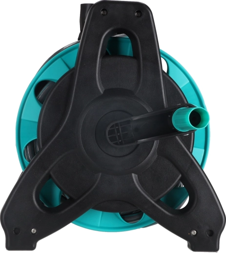 Det stabile stel med tromle og håndsving sikrer hurtig oprulning og pladsbesparende opbevaring. Det nedfældelige håndtag sparer plads ved opbevaring og transport.