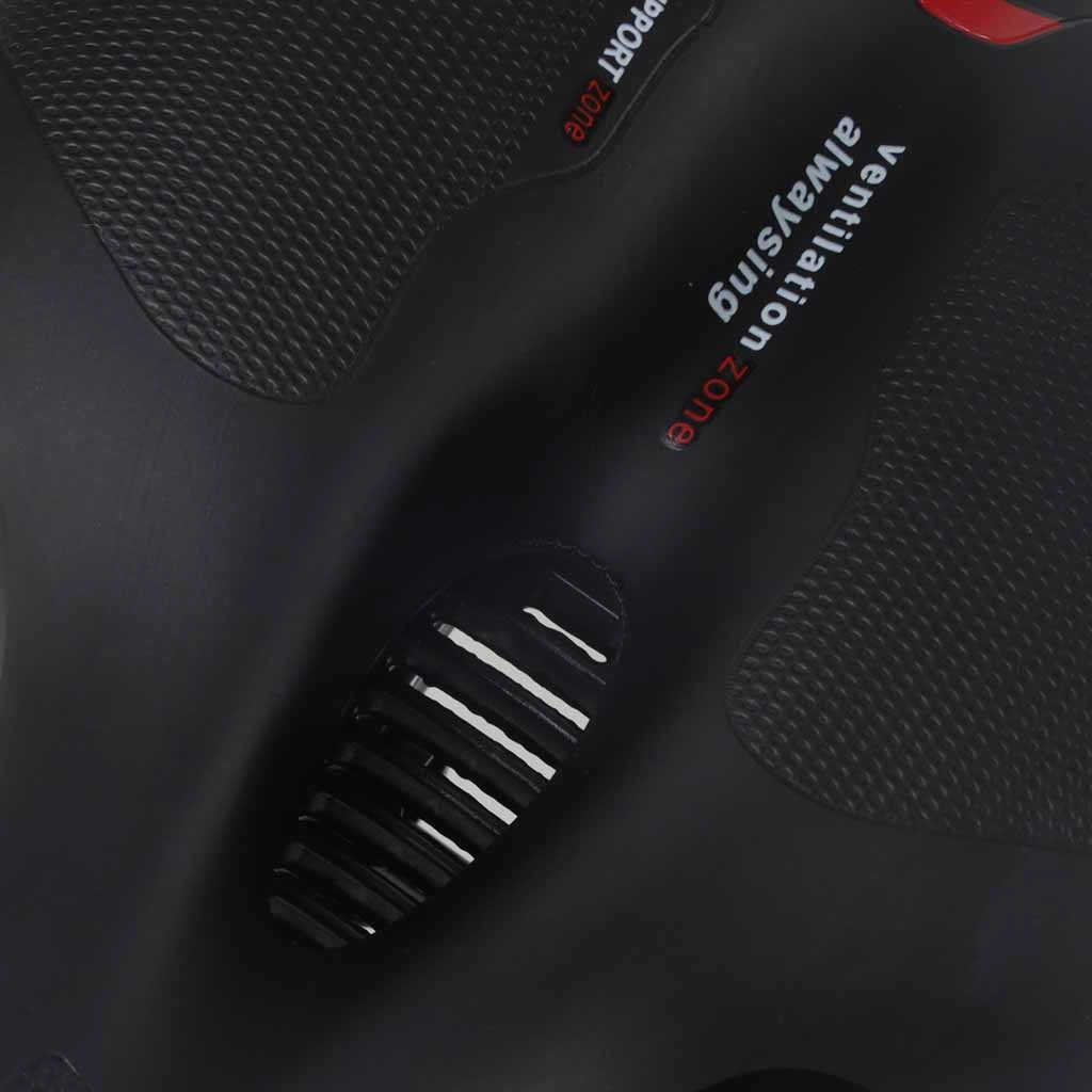 Den centrale ventilationskanal aflaster tryk i følsomme områder og forbedrer luftgennemstrømningen for højere komfort på længere ture.