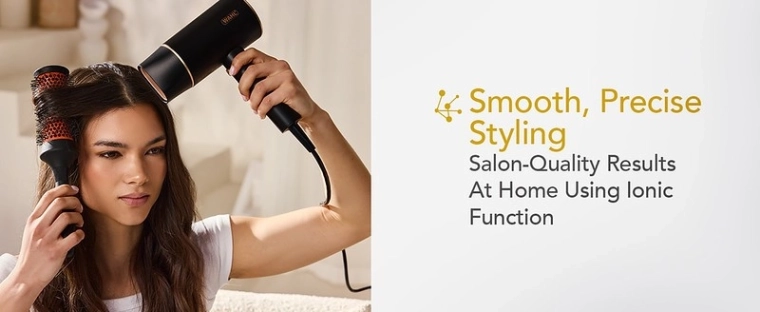 En kraftig og jævn luftstrøm forkorter tørretiden og giver resultater som i salon – bekvemt hjemme hos dig.