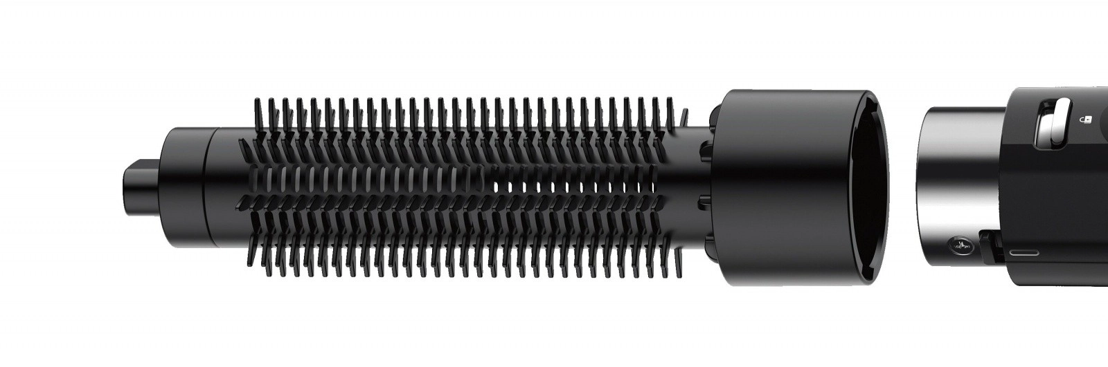 Den aftagelige opbygning med tætte børster hjælper med at skabe både indadbøjede og udadbøjede spidser samt naturlig volumen uden krus.