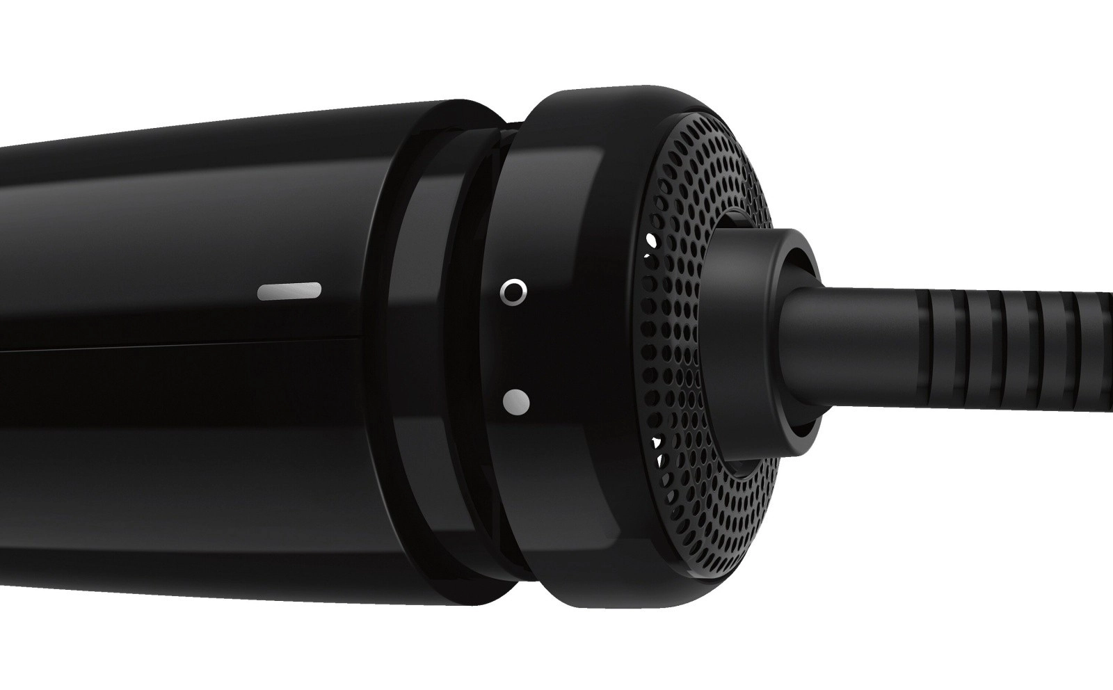 Den ventilerede børste fordeler den varme luft jævnt gennem cylinderen og tørrer samt former håret, mens du børster – for glatte længder og løft ved rødderne.