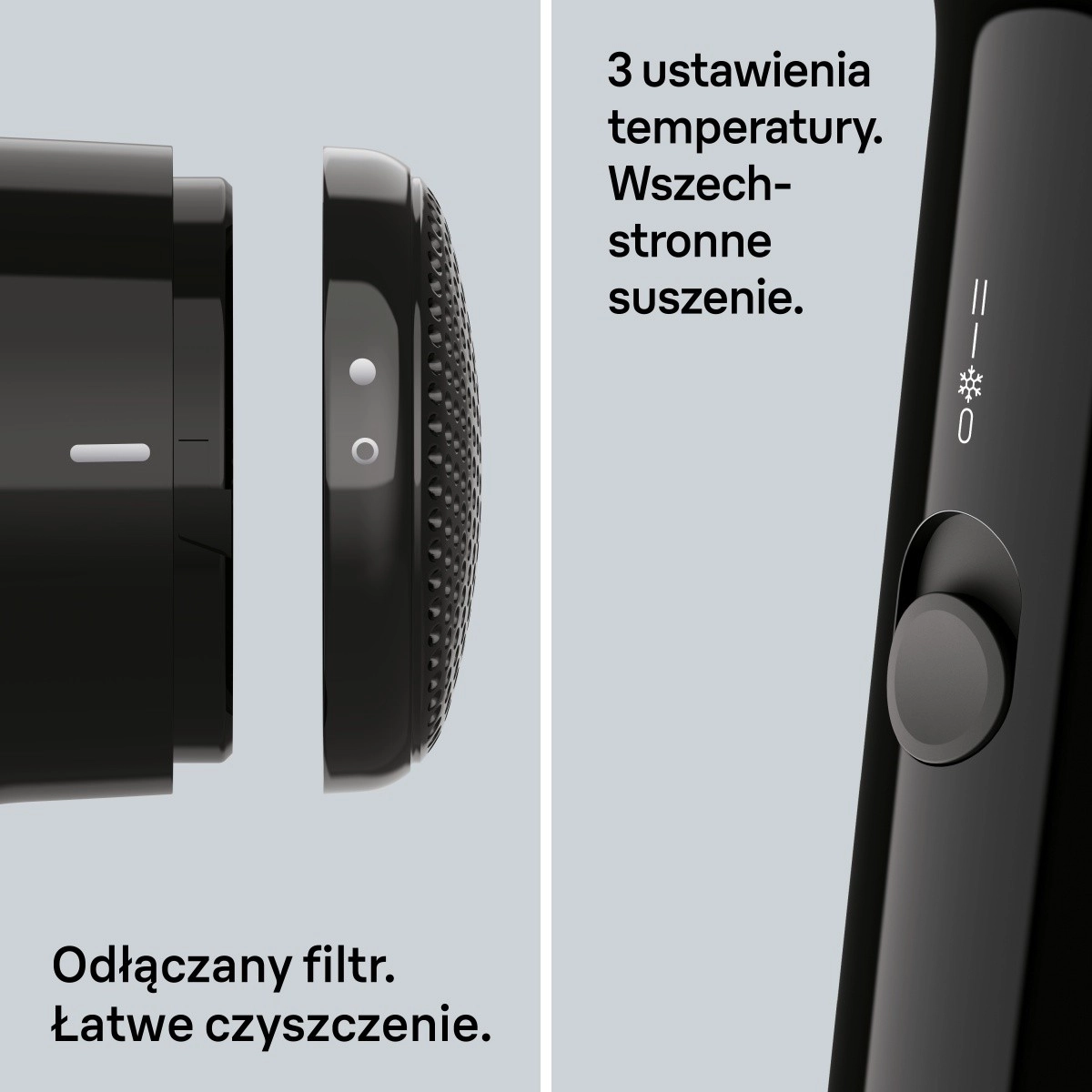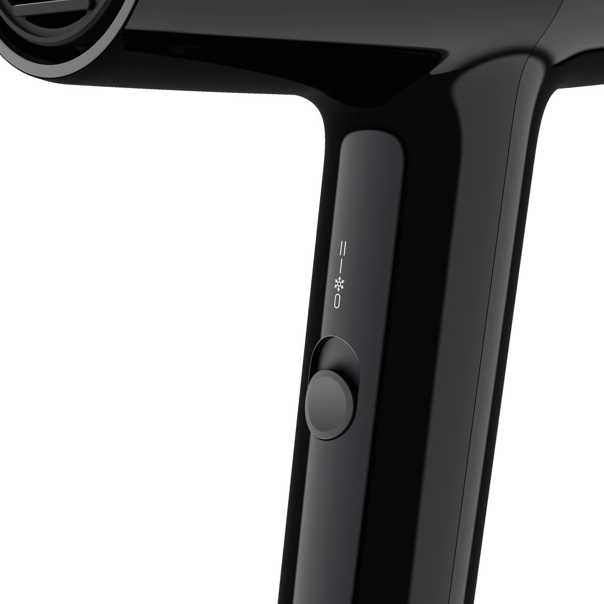 Et ergonomisk håndtag og overskuelig betjening gør den let at håndtere, og flere trin for luftstrøm og temperatur lader dig tilpasse tørringen til din hårtype. Koldluftsfunktionen hjælper med at fiksere den færdige frisure og give glans.