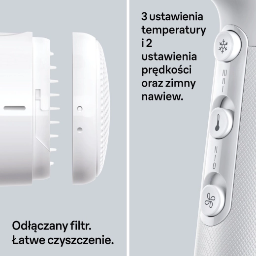 Udnyt flere hastigheds- og varmeniveauer for styling skræddersyet til din hårtype, og afslut med kold luft for ekstra glans og længere holdbarhed af frisyren. Det aftagelige filter gør rengøringen let og forlænger apparatets levetid.