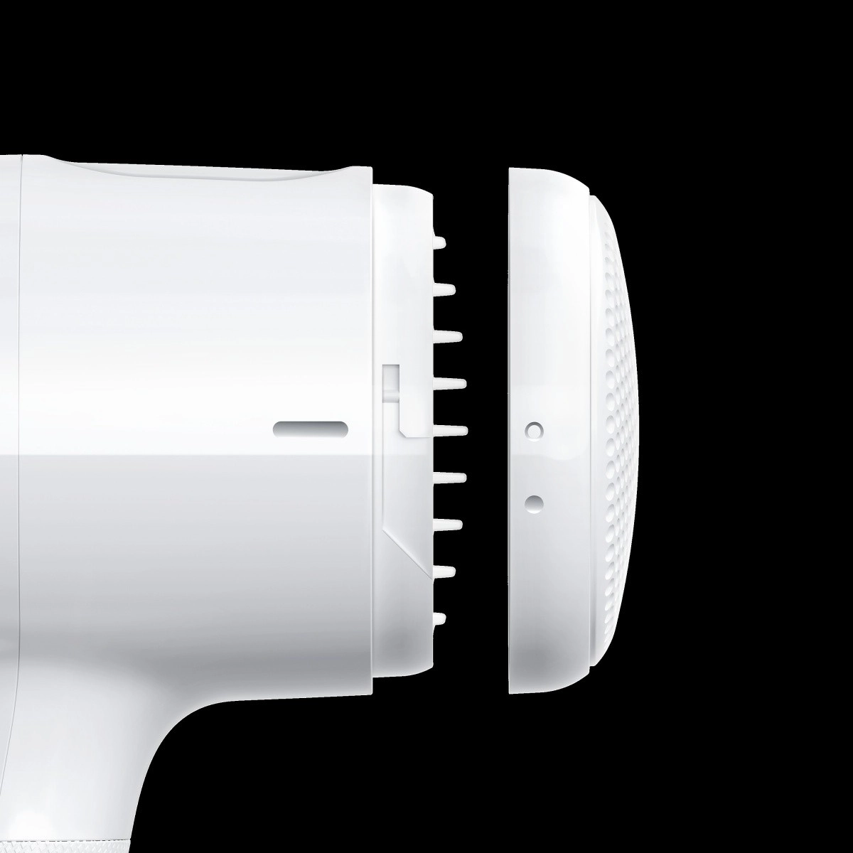 Den smalle dyse leder luften præcist derhen, hvor der er brug for det – for udglattede længder og definerede spidser.