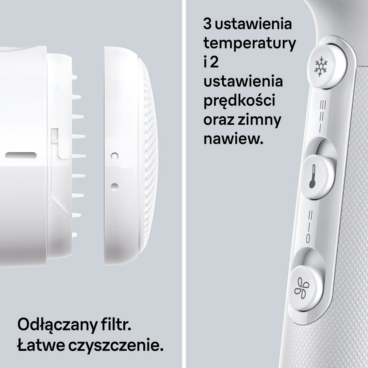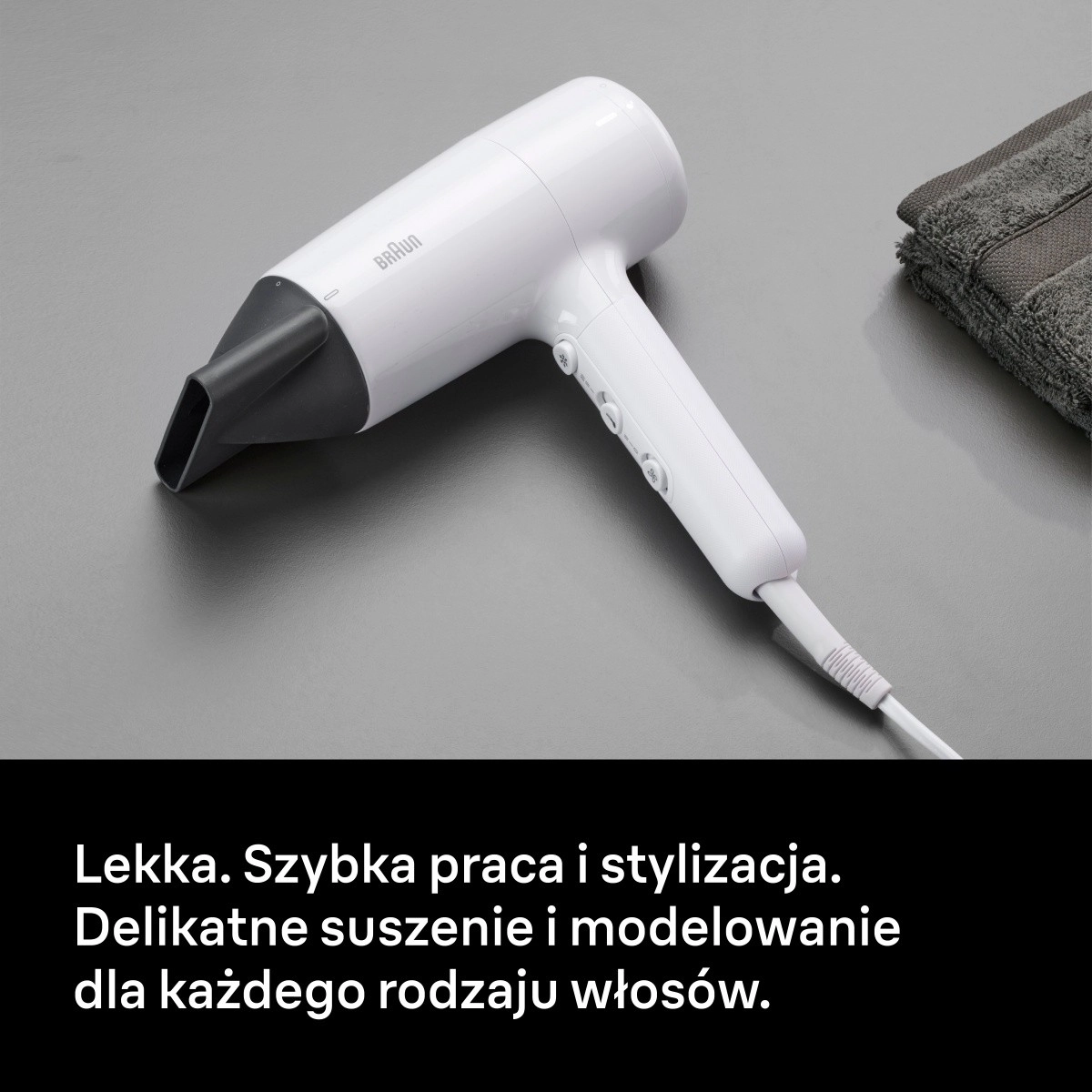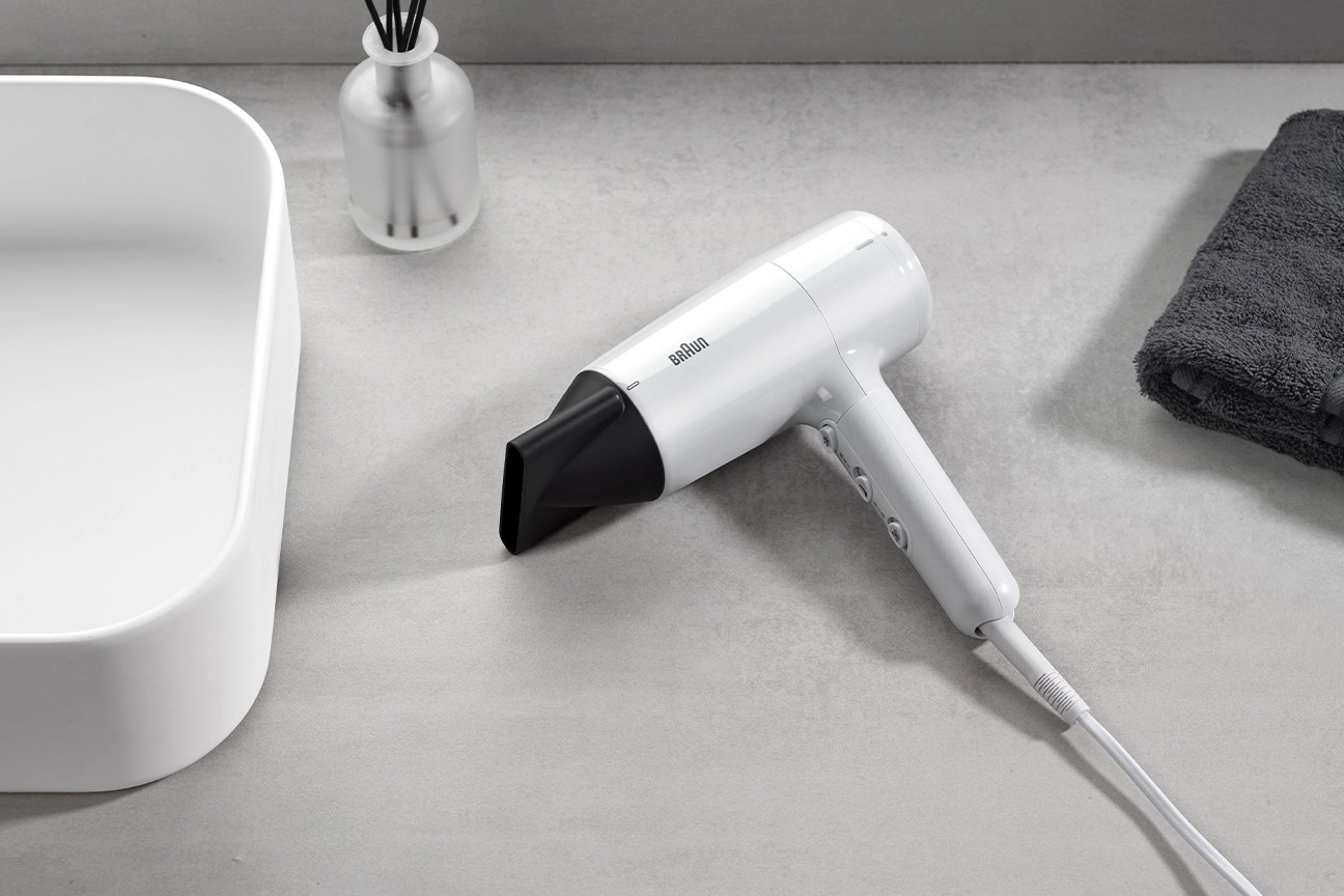 Den kraftige luftstrøm forkorter tørretiden og gør det muligt at style håret hurtigt uden unødvendig varmepåvirkning.