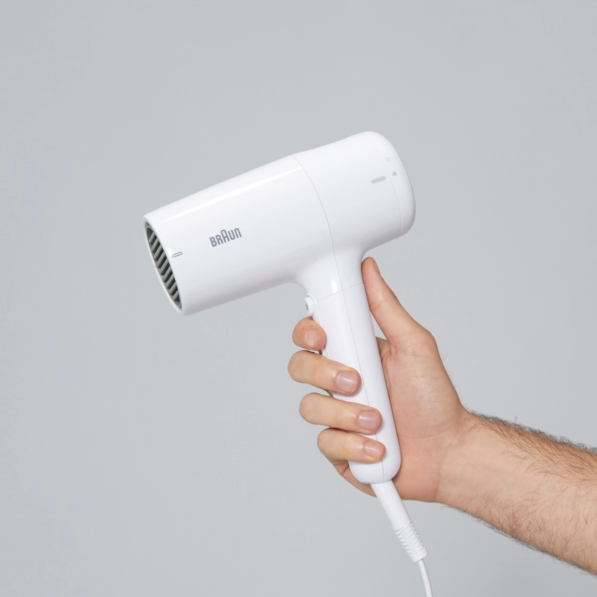 Det kompakte design med sammenklappeligt håndtag sparer plads i tasken og på badeværelset og er ideelt til rejser.