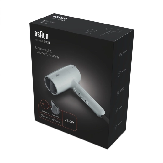 Leder du efter en pålidelig hårtørrer, der klarer hurtig tørring og skånsom volumen? Denne hårtørrer med 2100 W kombinerer en kraftig luftstrøm med gennemtænkte mundstykker til præcis formning. Koncentratoren retter luftstrømmen for en glat føn, mens diffuseren fremhæver naturlige bølger og volumen uden overdreven varme.