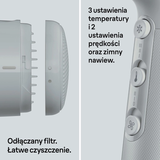 Det aftagelige bagfilter gør rengøringen hurtig, bevarer ydeevnen og forlænger hårtørrerens levetid.
