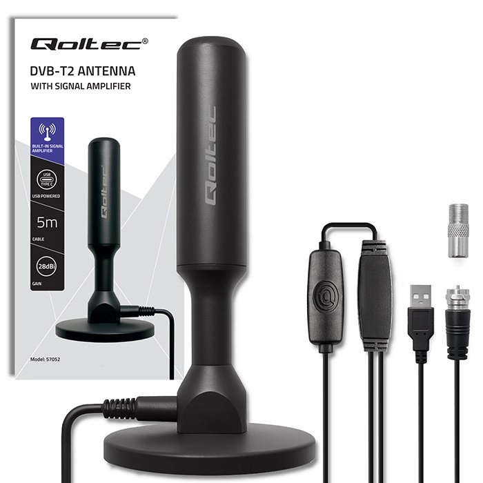 Strøm direkte fra TV eller set-top-boks via USB. F-Male-stik passer til de fleste tunere og DVB-T/T2-fjernsyn.