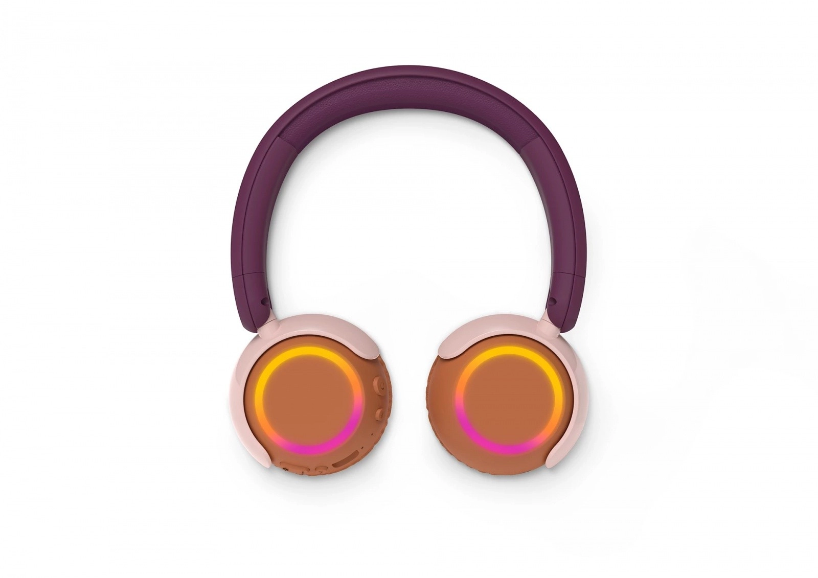 Farverige LED-ringe på ørekopperne lyser dagen op. Den trådløse delingsfunktion lader to børn lytte til det samme indhold samtidigt.