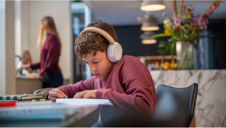 Beskyt børns hørelse med en grænse på 75 dB (85 dB i rejsetilstand). Adaptiv støjreduktion tilpasser sig automatisk omgivelserne og hjælper børn med at høre tydeligt i støjende miljøer uden at skrue op for lyden.