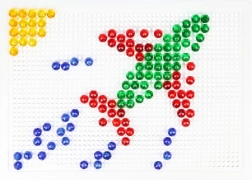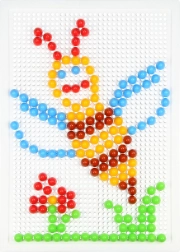 Denne krystalmosaik er et ideelt valg til den første kreative leg. Med de gennemsigtige, farvede knapper opstår tydelige og legende billeder på den hvide plade. Børn øver tålmodighed, hånd-øje-koordination og lærer at genkende farver og former.