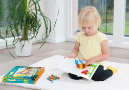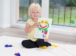 At sætte knapperne i gitteret styrker hånd-øje-koordination, tålmodighed og koncentration – ideelt til førskolebørn.