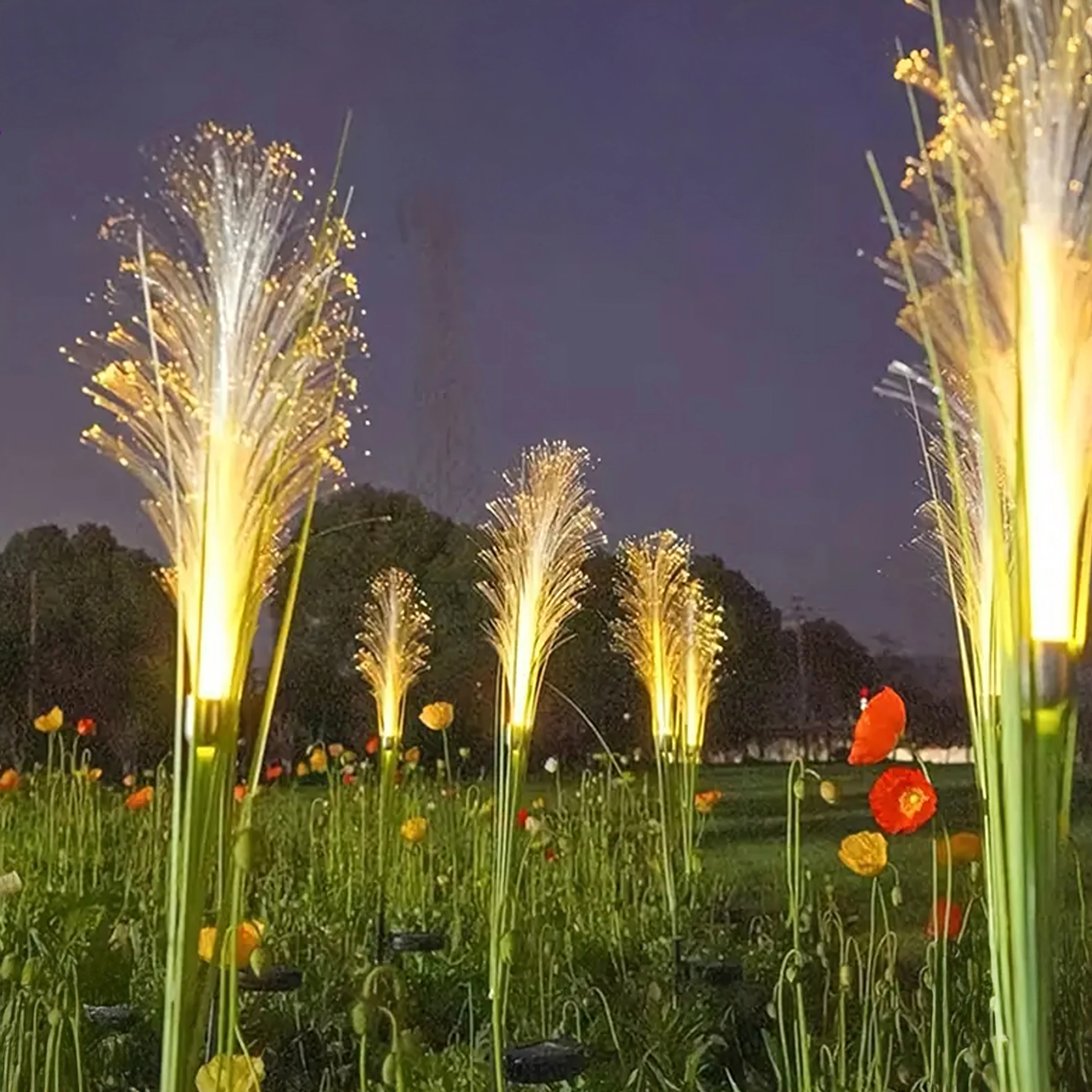 Fine optiske fibre skaber et glitrende, naturligt udtryk og et behageligt varmt lys, der gør sig godt i både græsplæne og blomsterbede.