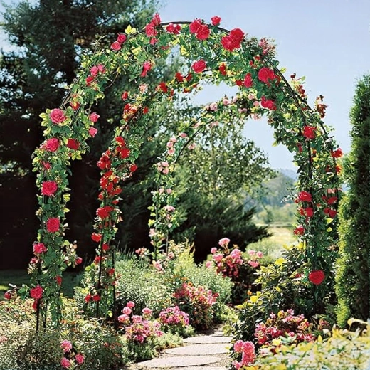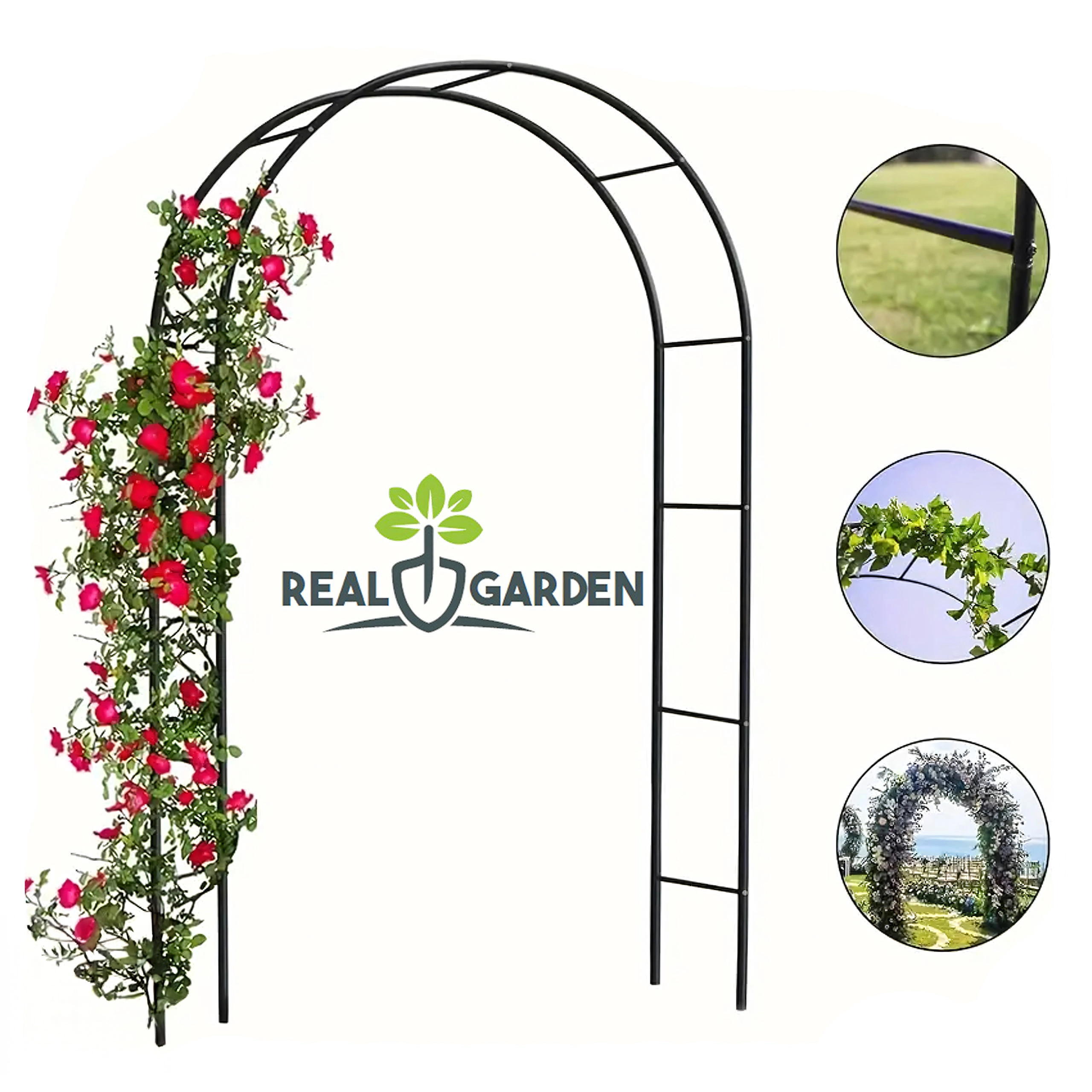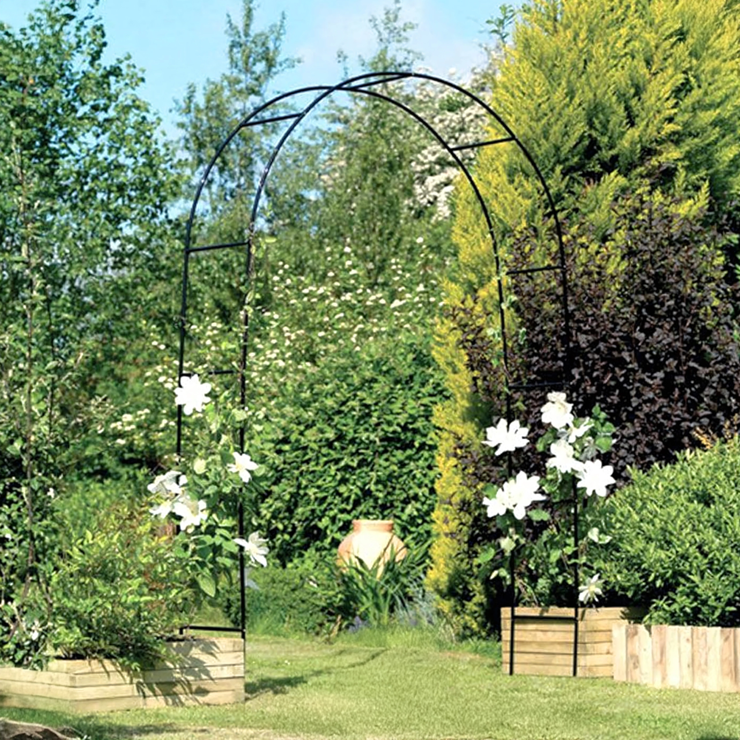 Elegant havebue i holdbart metal skaber en imponerende indgang til haven og giver stabil støtte til roser, vinstokke og klematis. Nem montage af rørdele og universelt design til dekorationer, bryllupsporte og klatreblomster.