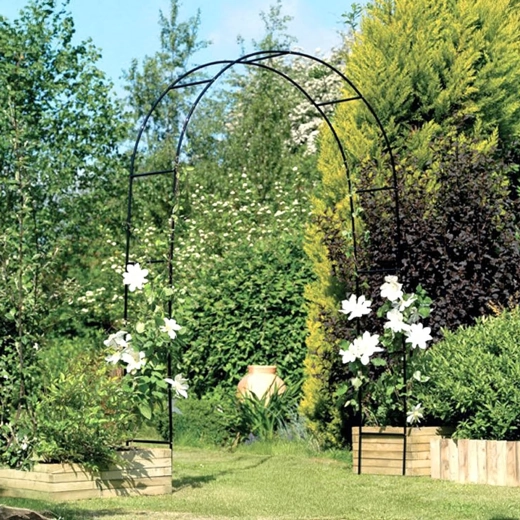 Den stabile ramme bærer sikkert roser, vin og prydlianer og skaber et markant haveelement.