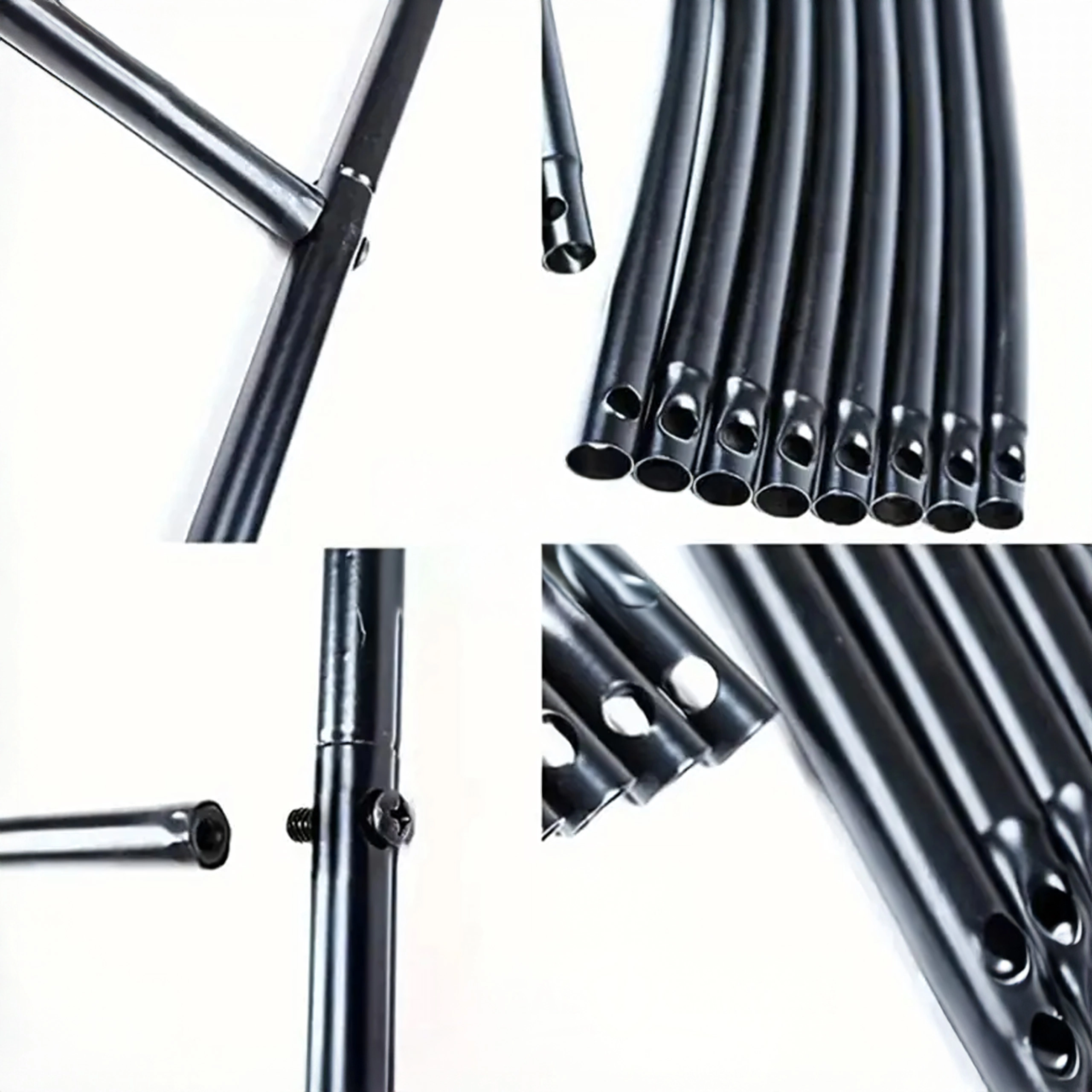 Takket være det modulære rørsystem er samlingen hurtig og intuitiv. Det minimalistiske sorte look passer til både moderne og klassiske haver, til bryllupper og havefester. Sæt blot benene i jorden eller i plantekummer og lad planterne vokse i højden.