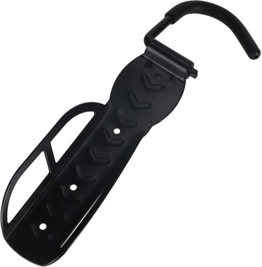 En praktisk og sikker løsning til daglig opbevaring af din cykel. Metalbasen med skridsikre riller og den beskyttende gummikrog holder forhjulet sikkert, mens cyklen hænger i lodret position og ikke optager værdifuld plads. Den drejelige/bevægelige mekanisme øger komforten ved ophængning og nedtagning.