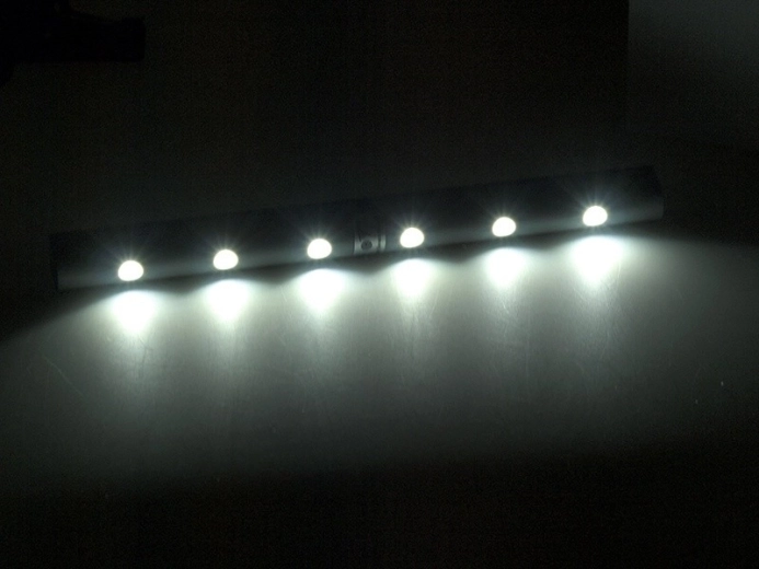 Praktisk underbys lampe med PIR-bevægelsessensor 120°, som sørger for automatisk belysning af arbejdsfladen. Tilbyder 6 energieffektive LED med en lysstyrke på 50 lm, nem montering med 3M-tape eller skruer og strøm fra 5× AAA-batterier.