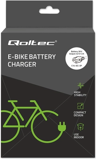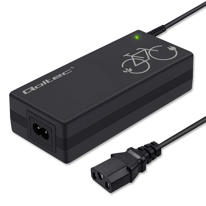 Den kompakte Qoltec-oplader til elcykler leverer udgang 42 V / 2 A (84 W) til 36 V Li‑ion batterier. Med C14 IEC 3‑pin stik og strøm fra en standard 230 V stikkontakt er den ideel til både hjemme- og rejsebrug. Opladeren tilbyder høj sikkerhed, pålidelighed og effektiv køling, har LED‑indikator for opladning og IP54 beskyttelse mod støv og stænk.
