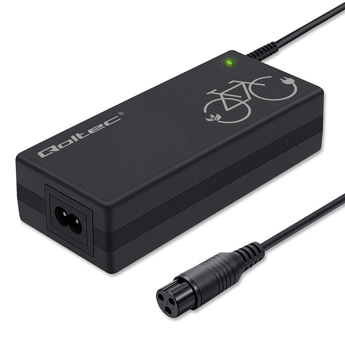 Qoltec opladeren er designet til effektiv og skånsom opladning af 36 V Li‑ion elcykelbatterier. Den intelligente elektronik sikrer stabil spænding på 42 V, ladestrom på 2 A og beskytter batteriet mod overopladning, overophedning og kortslutning. LED‑indikatoren gør det nemt at følge status: rød = oplader, grøn = fuldt opladet.