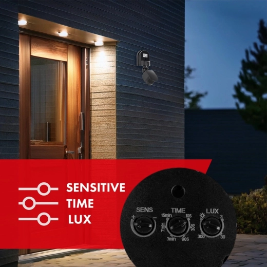 En pålidelig bevægelses- og skumringssensor, der gør det nemt og energieffektivt at styre lys på gange, i entréen, i garagen eller på en overdækket terrasse. Takket være den brede registreringsvinkel på 180° og den justerbare rækkevidde på 5–12 m kan du præcist tilpasse dækningen til de konkrete forhold. Det drejbare hoved muliggør finjustering af registreringsretningen, hvilket minimerer uønsket aktivering.