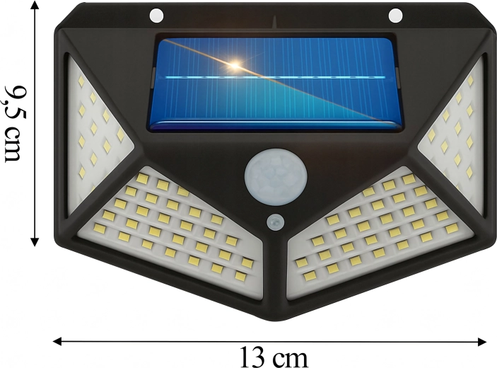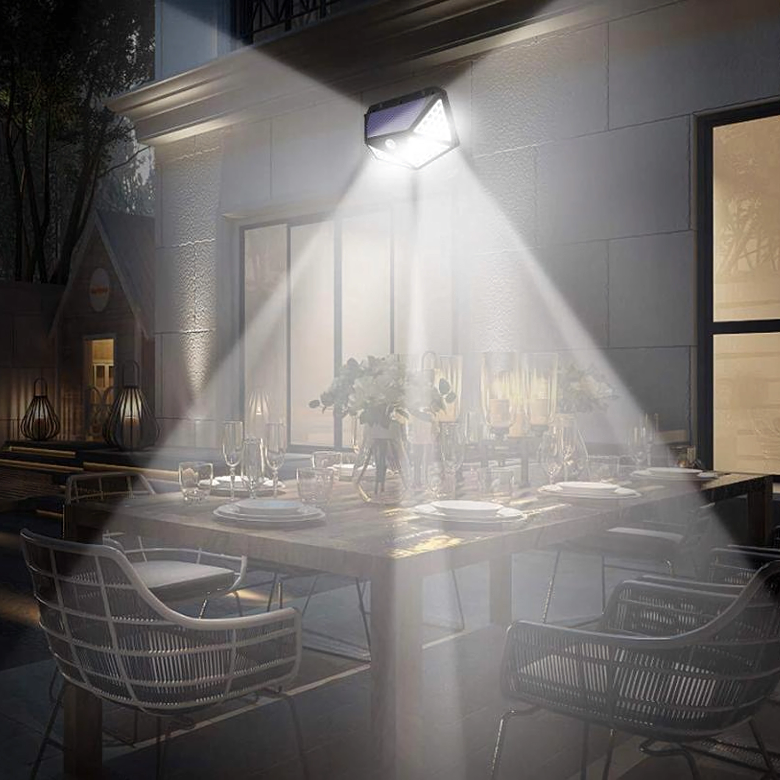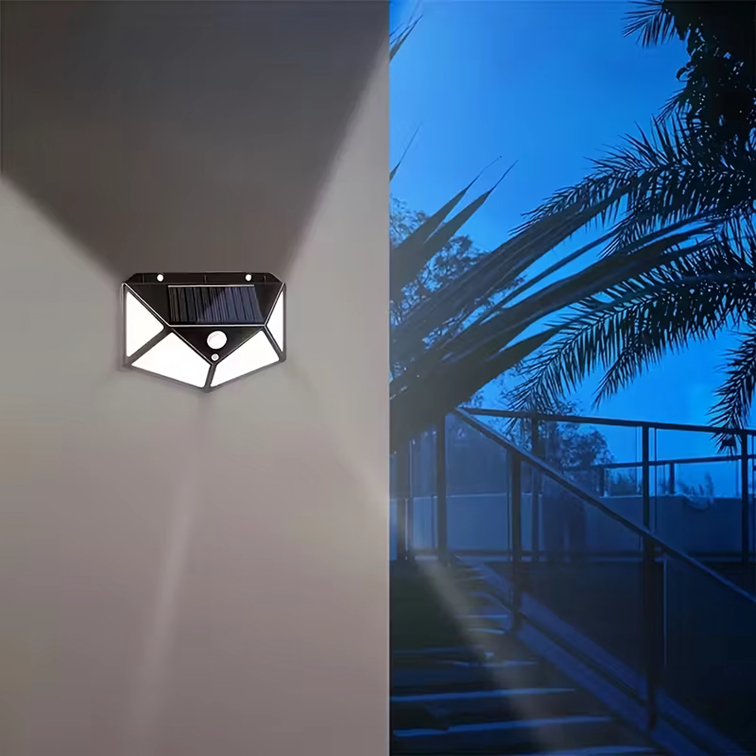 Den smarte solcelledrevne væglampe giver pålidelig og økonomisk belysning, hvor du har brug for sikker færdsel efter mørkets frembrud. Det indbyggede solpanel oplader batteriet i løbet af dagen, og de kraftige 100 LED leverer klart hvidt lys med bred dækning. PIR-sensoren reagerer på bevægelse og tænder kun lyset, når det er nødvendigt, hvilket forlænger batteriets levetid.