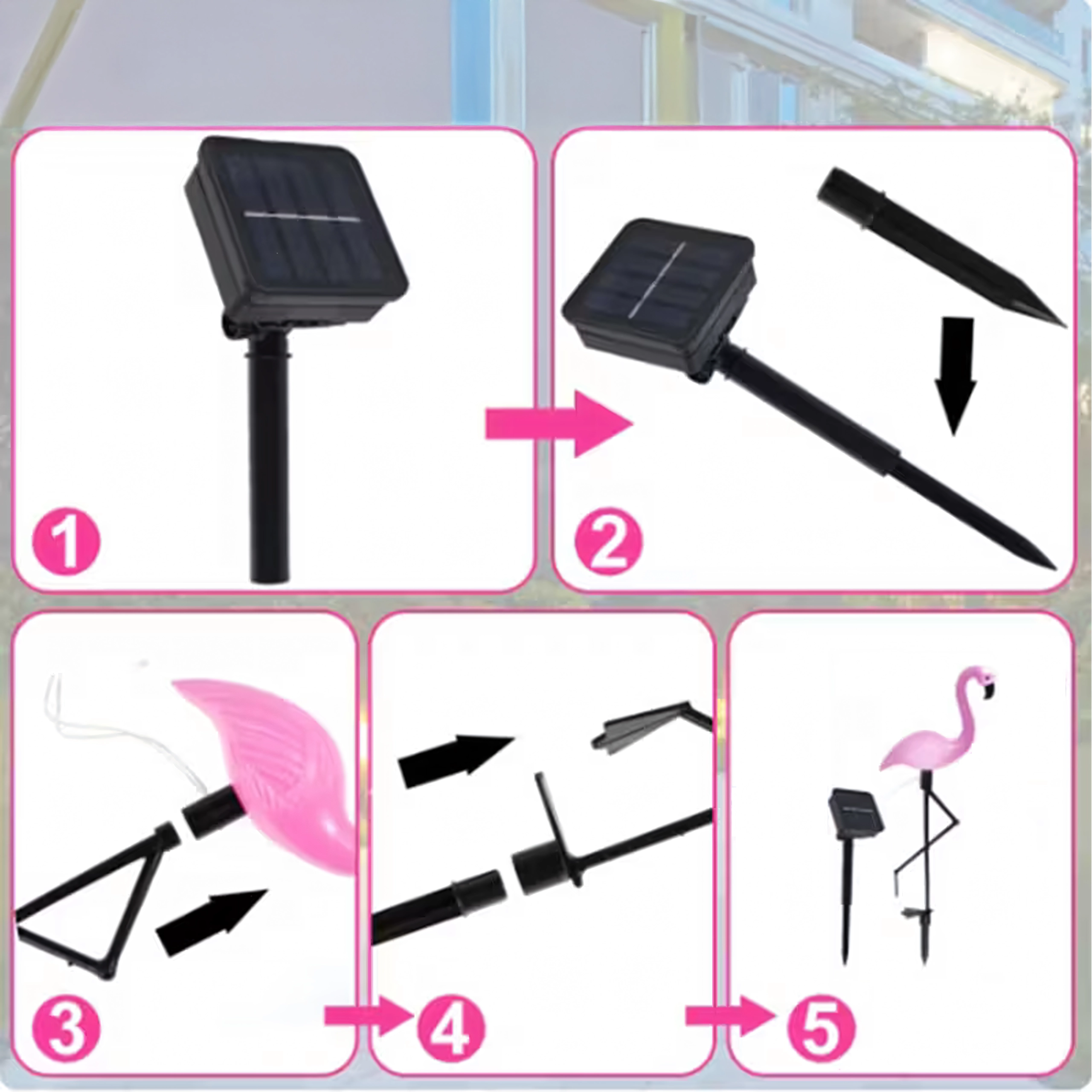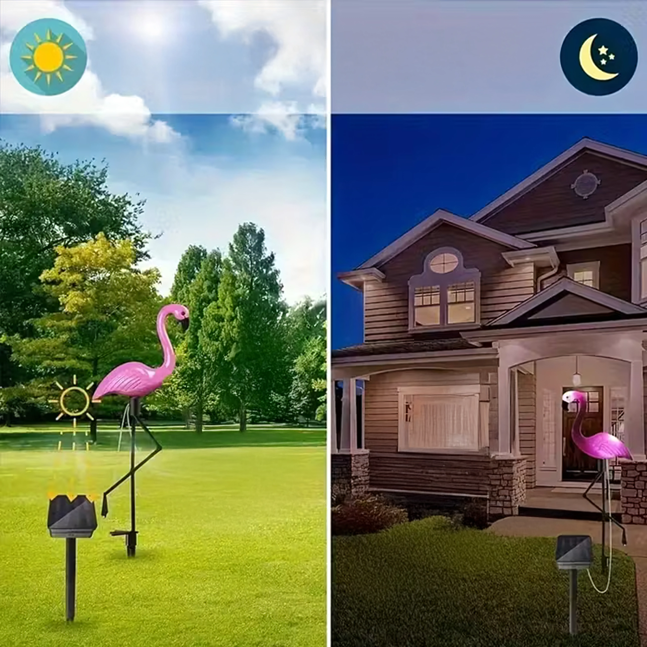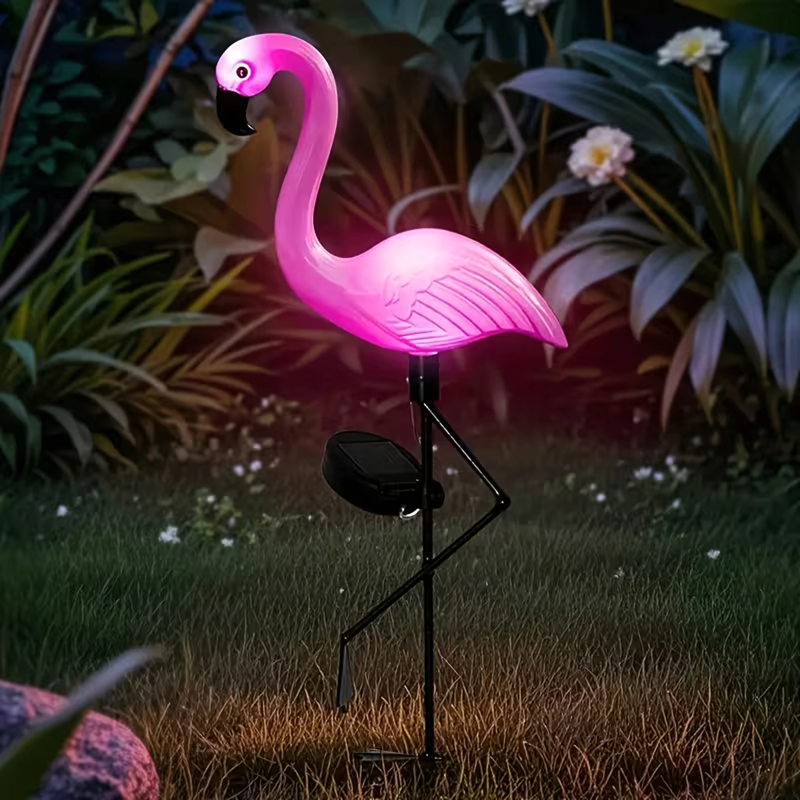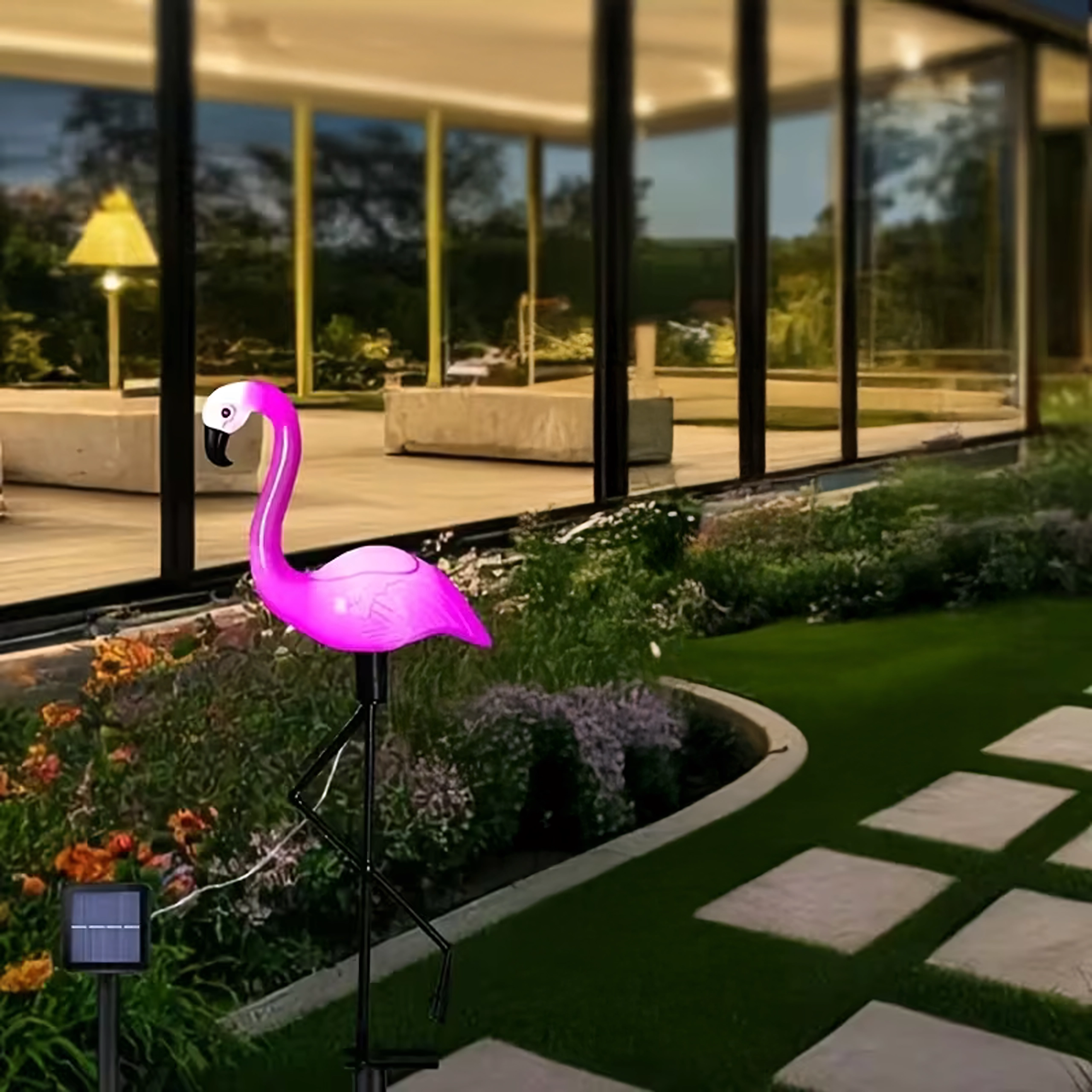- Solcelledrevet LED-havelampe – flamingo-dekoration