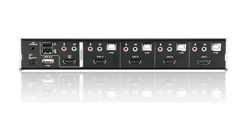 - Én konsol – fire computere: skift video, USB og lyd uafhængigt.