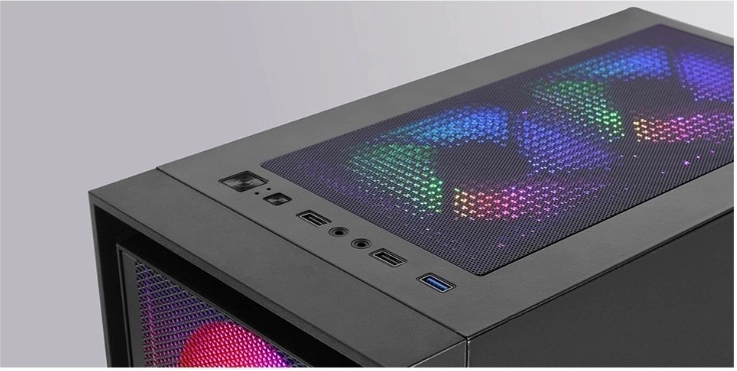Frontpanel i mesh med brede sideindtag maksimerer luftgennemstrømningen og holder komponenterne ved lave temperaturer. Sidepanel i hærdet glas fremhæver dit build og RGB-belysning og giver et rent, moderne look.