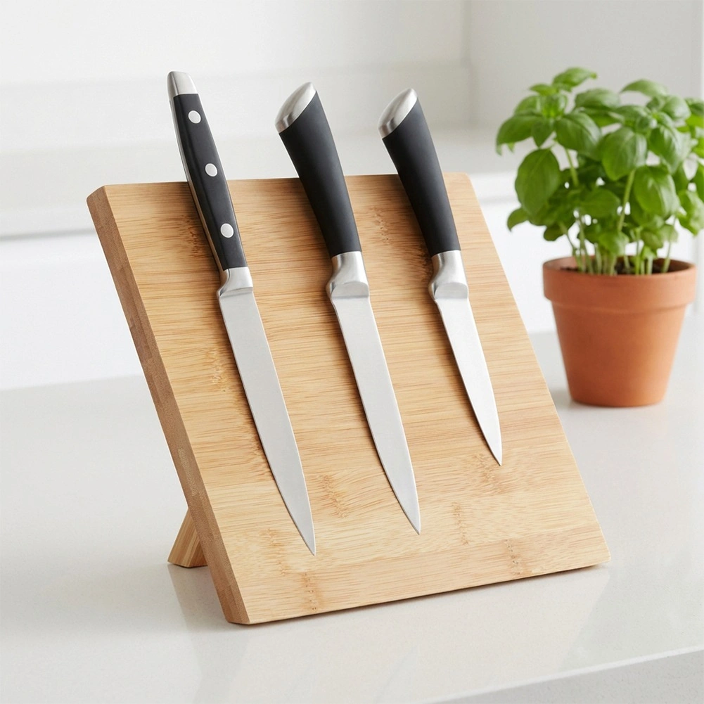 Integrerede magneter fastholder pålideligt knive og metalredskaber uden behov for sprækker – æggen forbliver beskyttet og altid lige ved hånden.