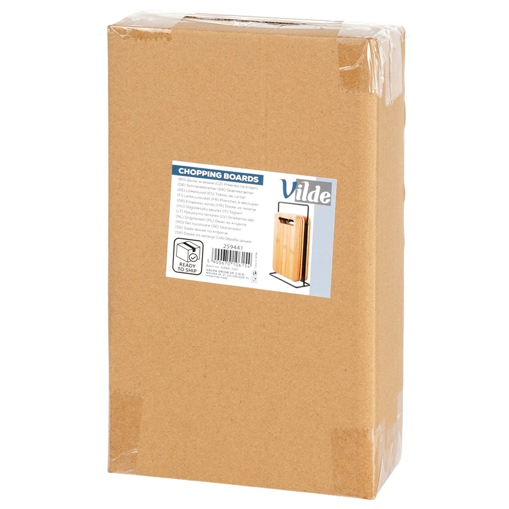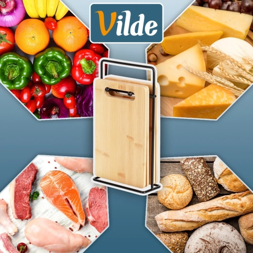 Sættet med bambusskærebrætter er ideelt til hverdagsskæring af grøntsager, frugt, brød og kød. Takket være de kompakte mål fylder det ikke unødigt på køkkenbordet, og stativet sørger for, at brætterne altid er lige ved hånden og ventileres hygiejnisk. Det tidløse, naturlige udtryk passer i ethvert køkken.
